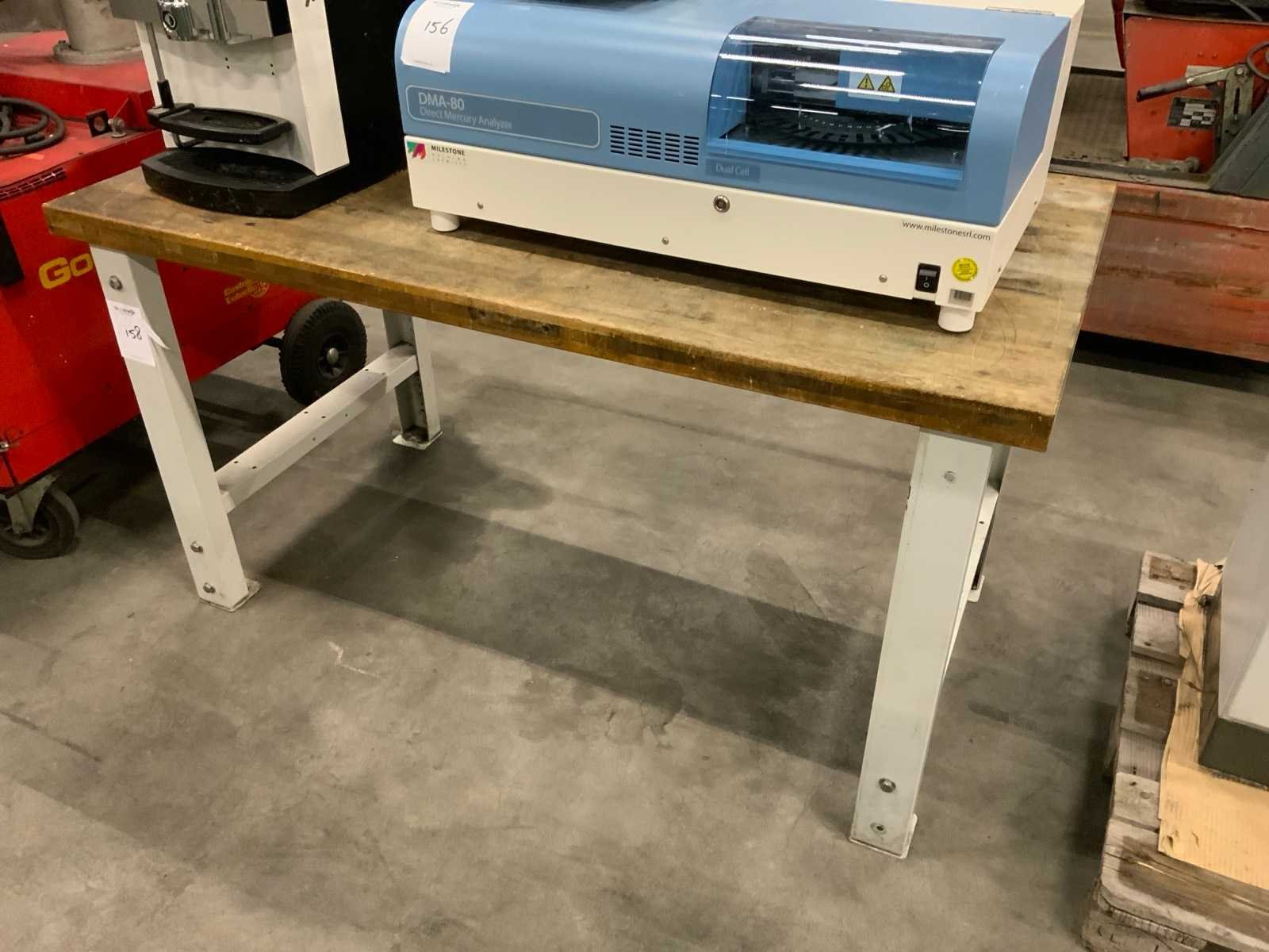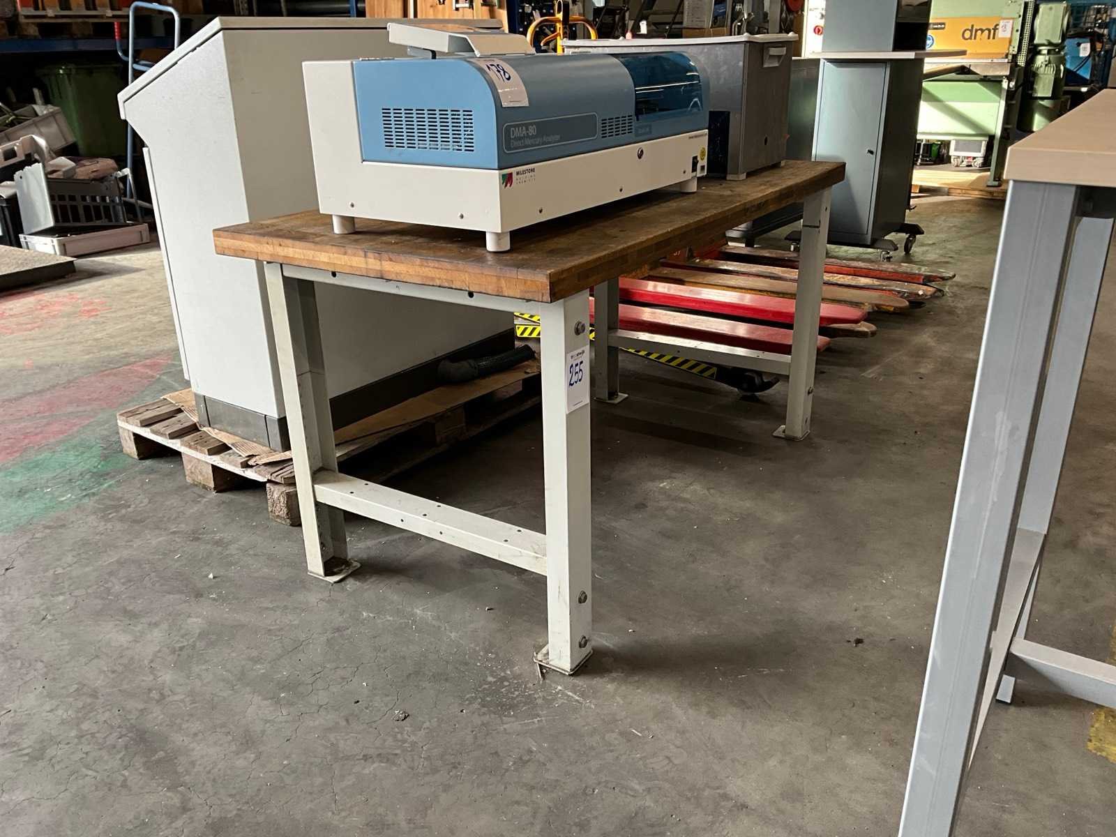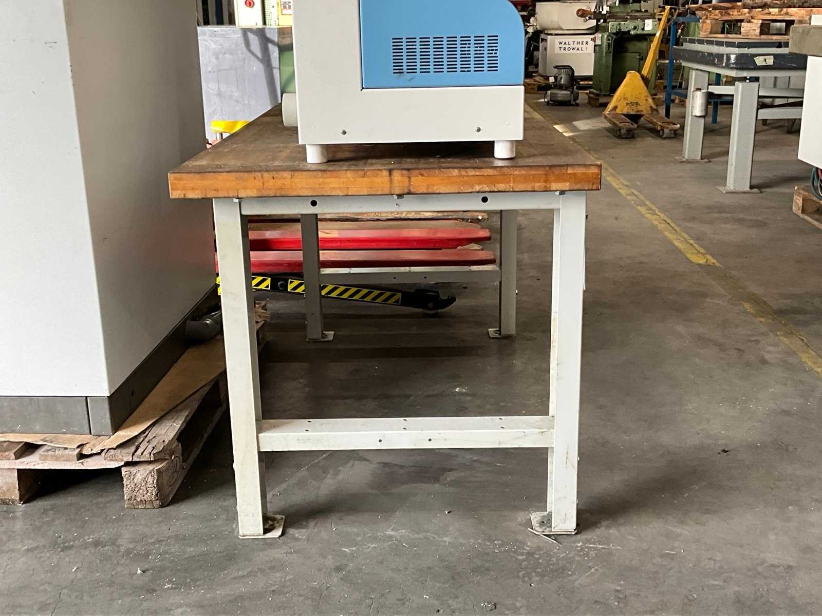 Profielstaal onderstel; in hoogte verstelbaar; zwaar hout tafelblad; dikte tafelblad 50 mm; afmeting 1500x800x800 mm; zonder apparatuur op de tafel;