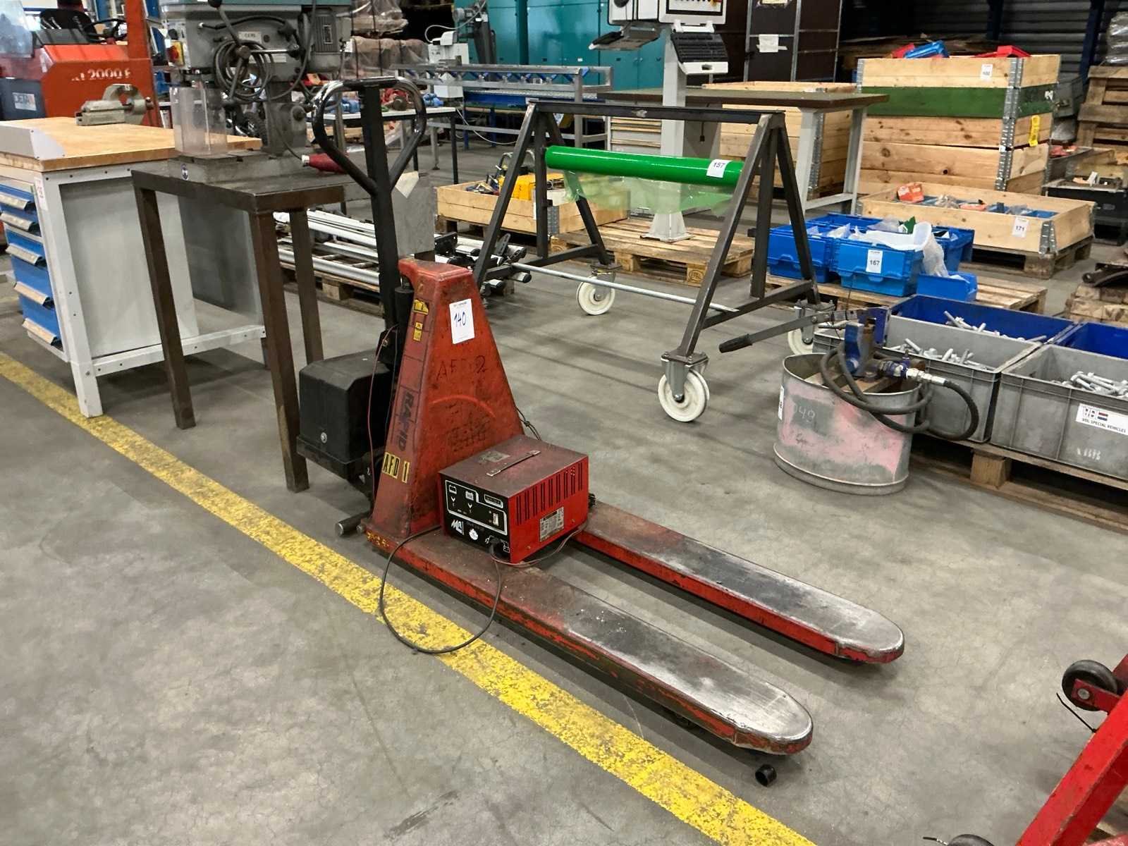 Hefhoogte: 820 mm Merk: Rapid Hefvermogen: 1000kg Lepellengte: 1150mm Accu lader: true Totale afmeting L: 1700mm Totale afmeting Breedte: 550mm Totale afmeting Hoogte: 1220mm