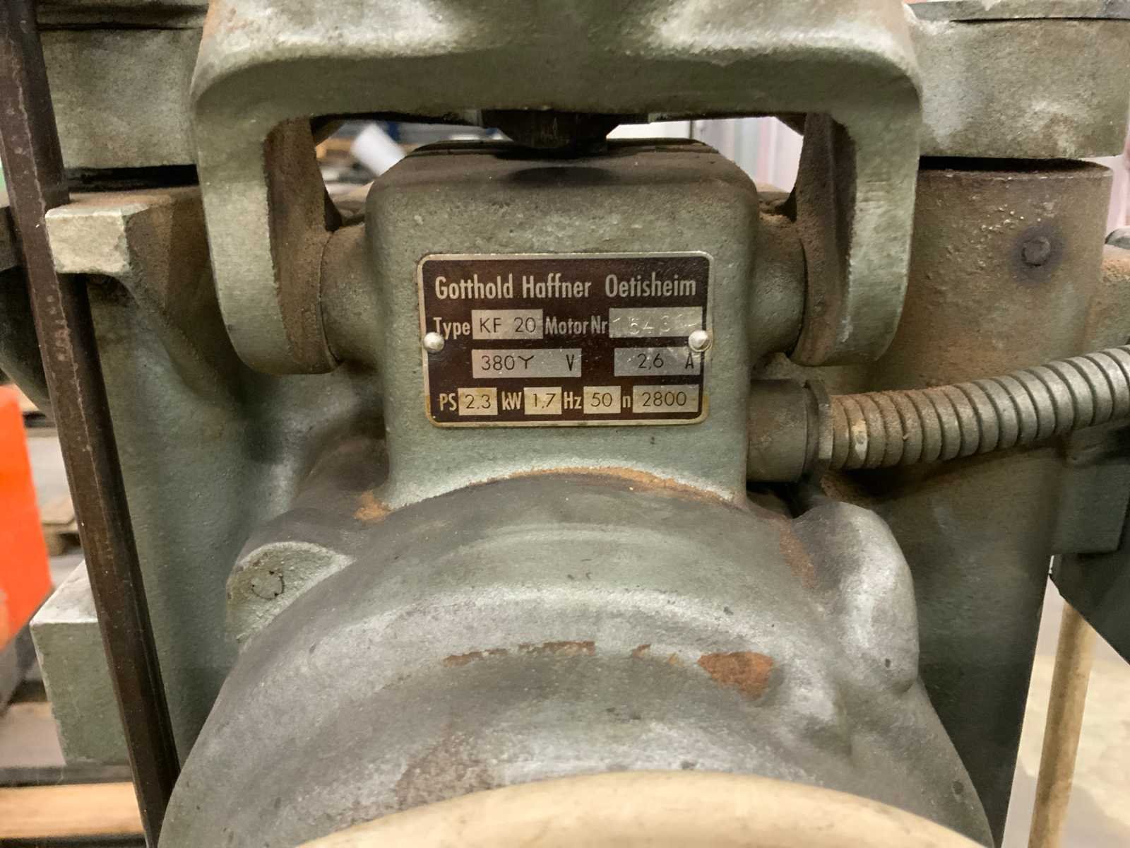 W Merk: Haffner Type: KF 20 Serienummer: 15431 Slaglengte: 200mm Tafel afmeting l: 740mm Tafel afmeting b: 250mm Aansluiting: 380V Afmeting l: 770mm Afmeting b: 720mm Afmeting h: 2000mm