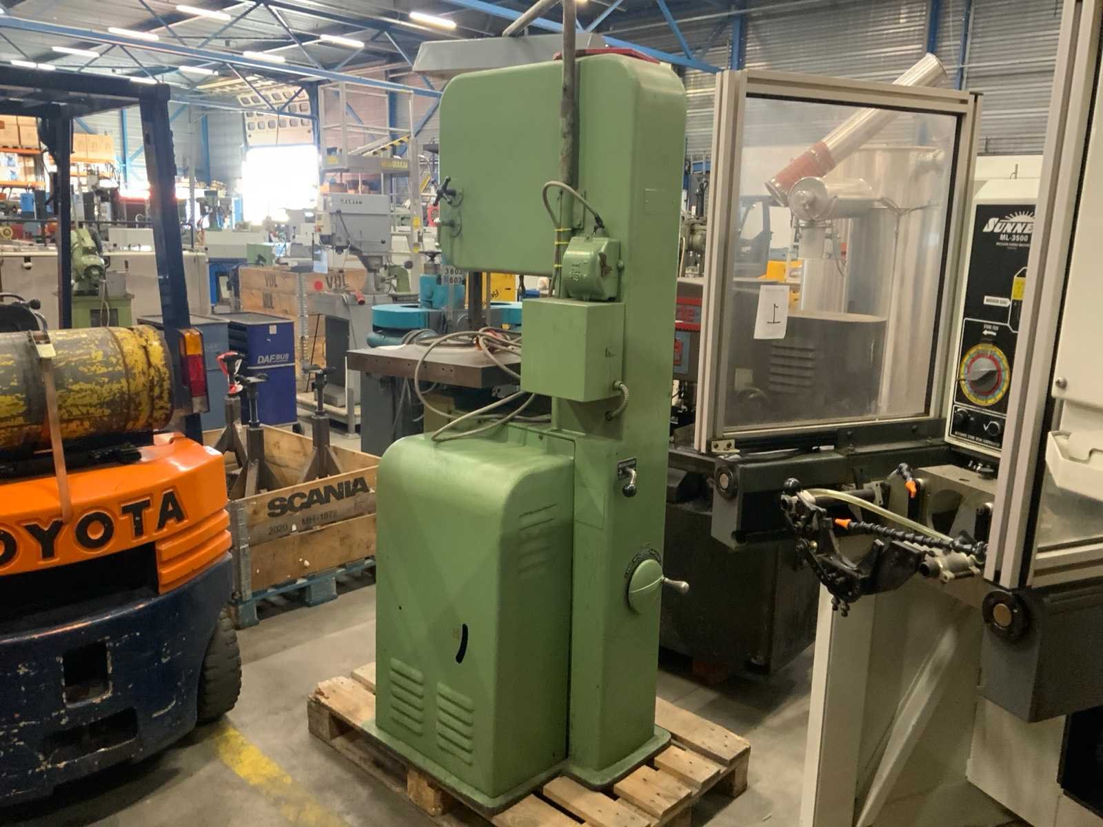 Voorzien van stomplas en slijp inrichting Merk: Doal Aansluiting: 380V Afmeting l: 1050mm Afmeting b: 620mm Afmeting h: 2150mm