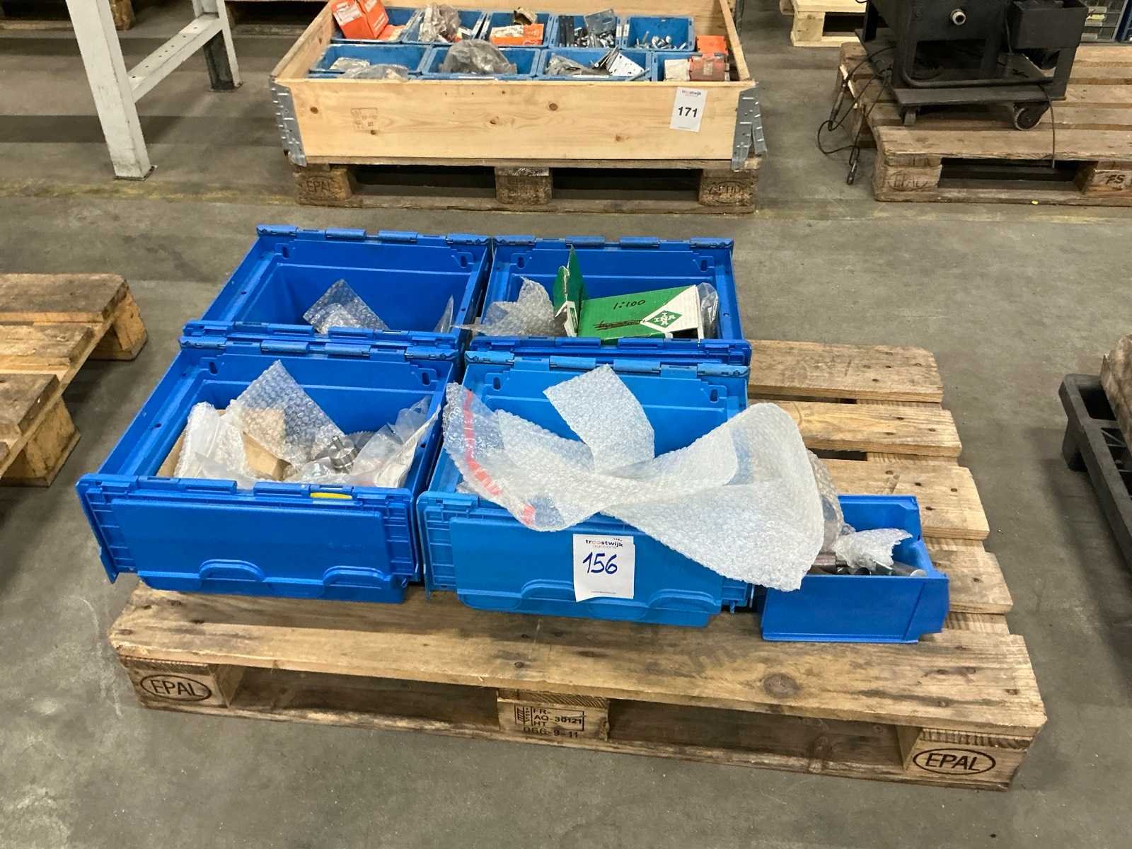 In 4 magazijnbakken, bestaande uit onder andere tandwielen, bevestigingsmaterialen, en divers