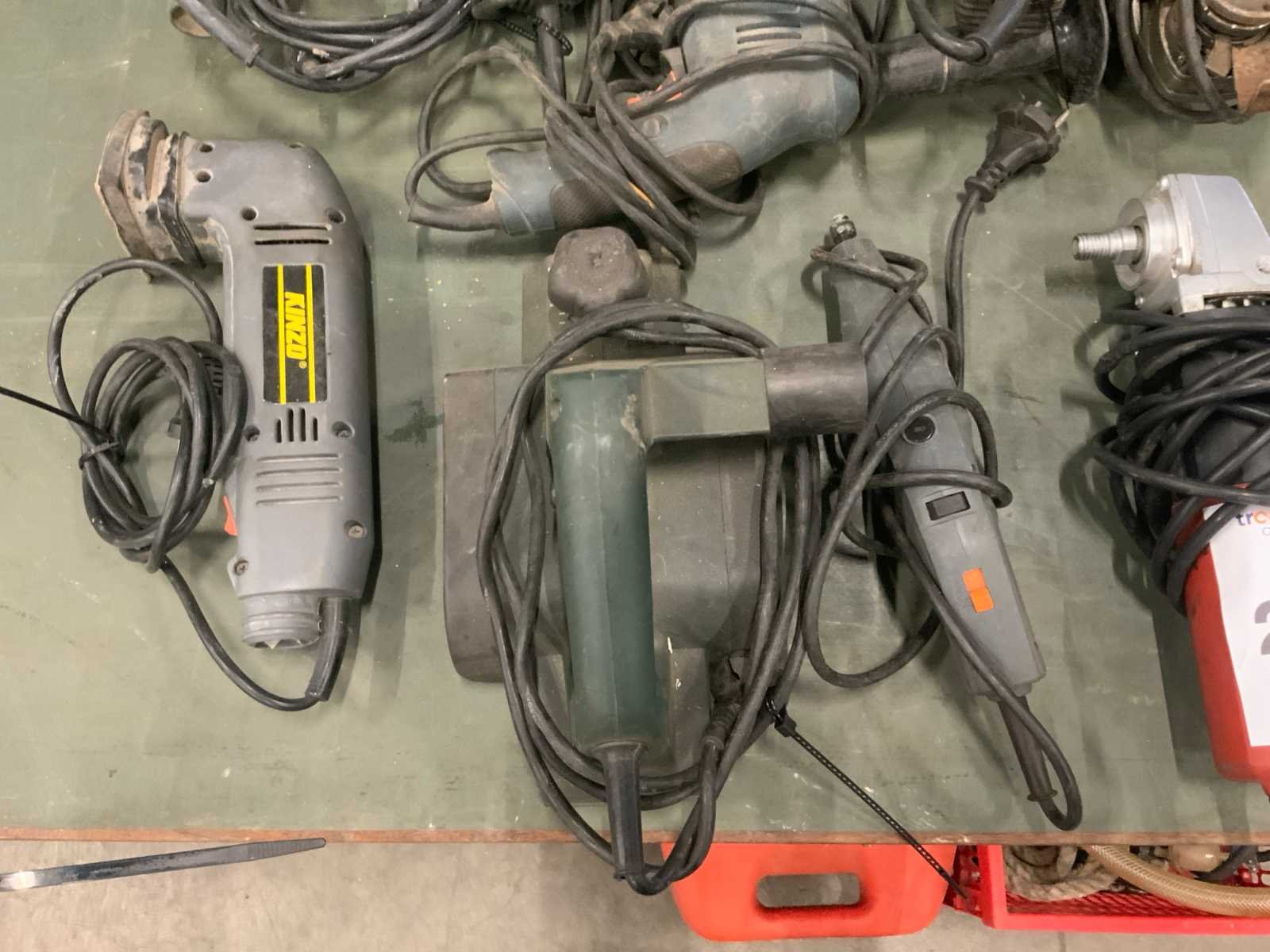 Waaronder: 1 handschaafmachine, 4 haakse slijptollen, 1 vlakschuurmachine