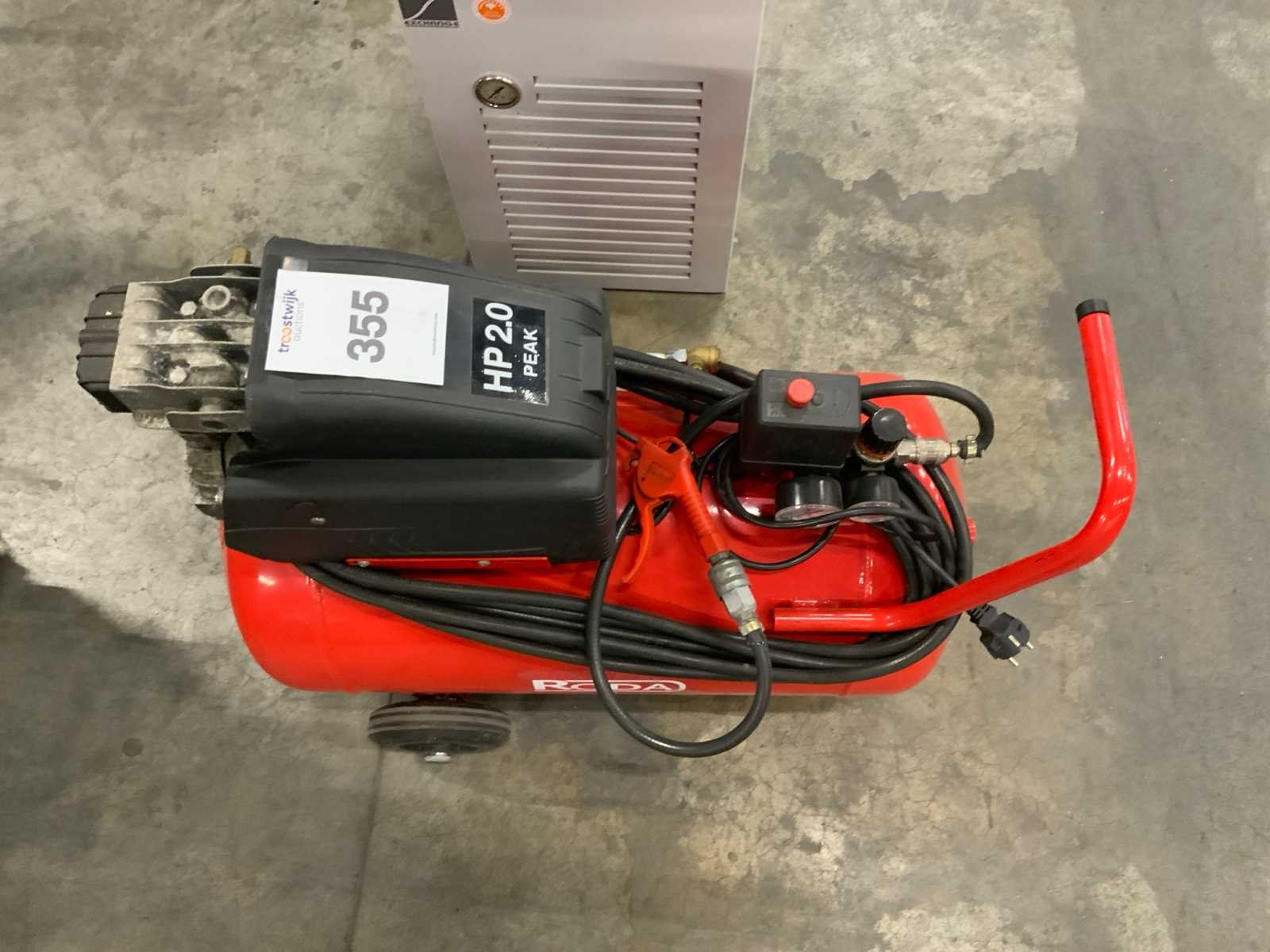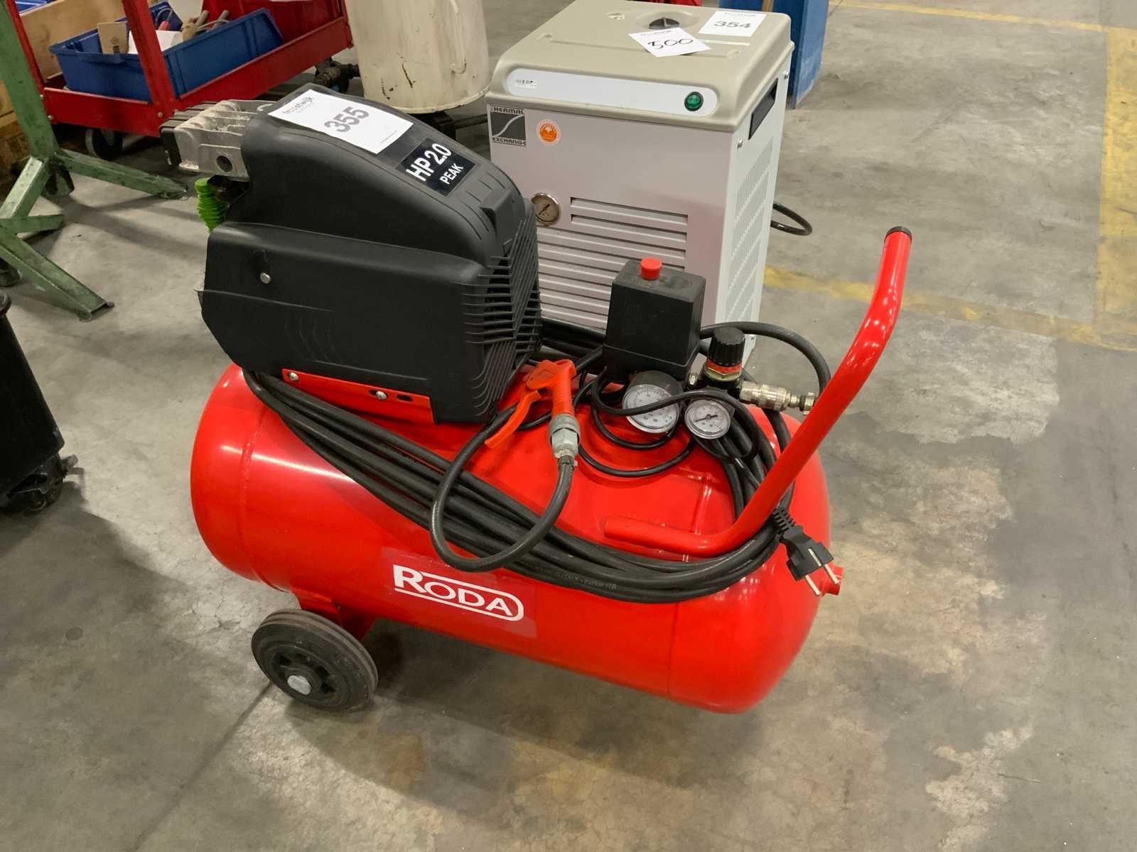 Met luchtpistool Merk: Roda Bouwjaar: 2012 Serienummer: 721206838C Mobiel: true Capaciteit.: 8bar Luchtstroom: 190l/min Buffertank inhoud: 50l Aansluiting: 230V Eigen gewicht: 33kg Totale afmeting L: 750mm Totale afmeting Breedte: 420mm Totale afmeting Hoogte: 650mm