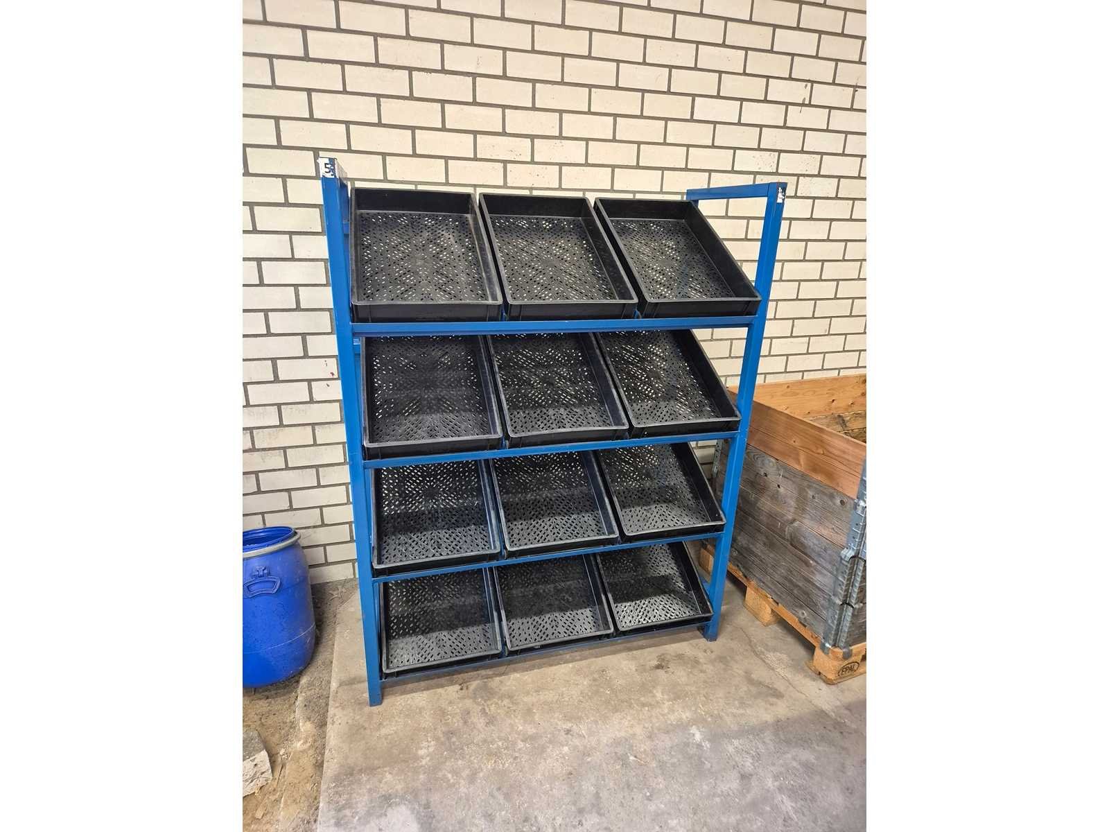 Stalen magazijnrek met kratten