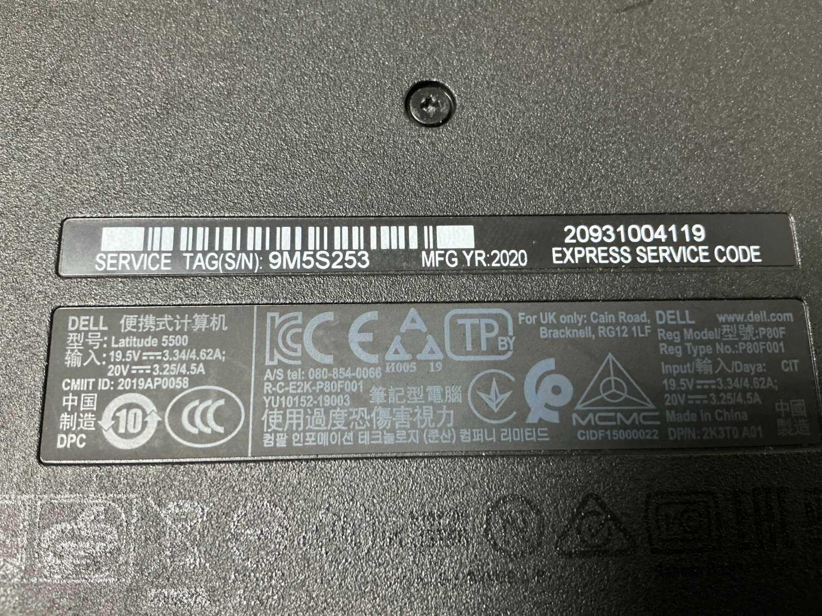 Laptops, Cosmetic Damage: Crack in bottom, Dell Latitude 5500, CPU: Intel Core i5-8365U@1.60GHz QC, MEM: 8GB, SSD: 256GB, no adapter ( cleaned and tested ) [ID: 138355] Merk: DELL