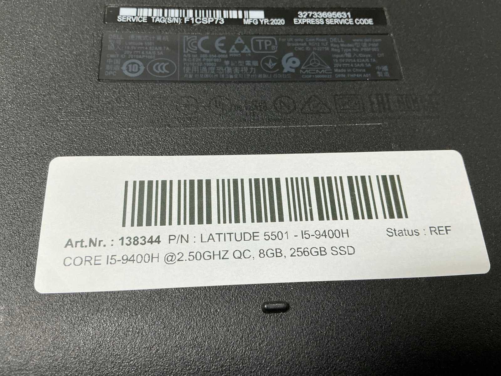 Laptops, Dell Latitude 5501, CPU: Intel Core i5-9400H@2.50GHz QC, MEM: 8GB, SSD: 256GB, no adapter ( cleaned and tested ) [ID: 138344] Merk: DELL