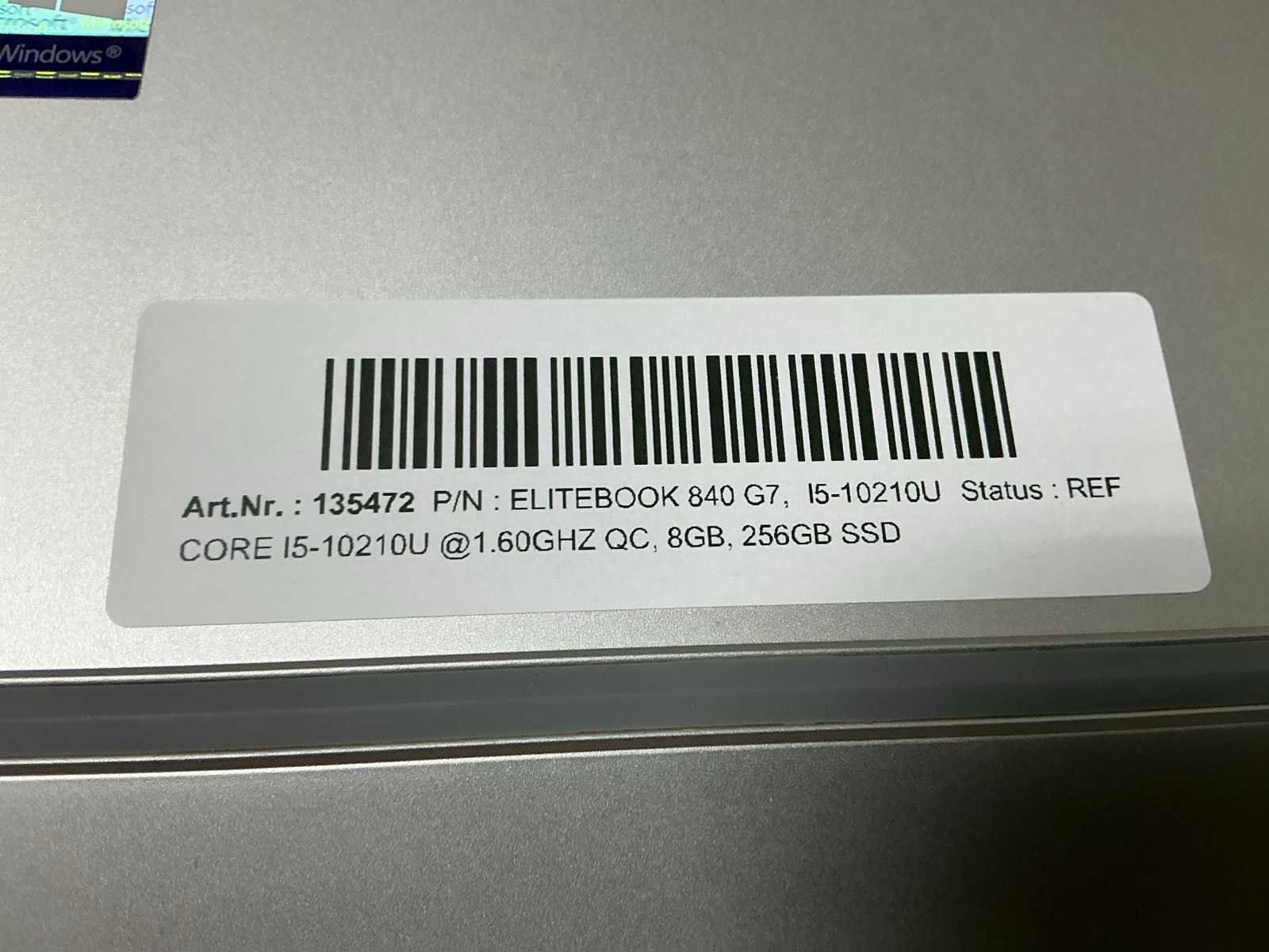 Laptops, ELITEBOOK 840 G7, , CPU: Intel Core i5-10210U @1.60GHz QC, MEM: 8GB, SSD : 256GB, damage on right corner, no adapter ( cleaned and tested ) [ID: 135472] Merk: HP