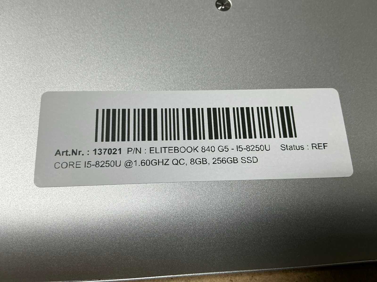 Laptops, HP EliteBook 840 G5, CPU: Intel Core i5-8250U @1.60GHz QC, MEM: 8GB, SSD: 256GB, no adapter, cosmetic damage ( cleaned and tested ) [ID: 137021] Merk: HP