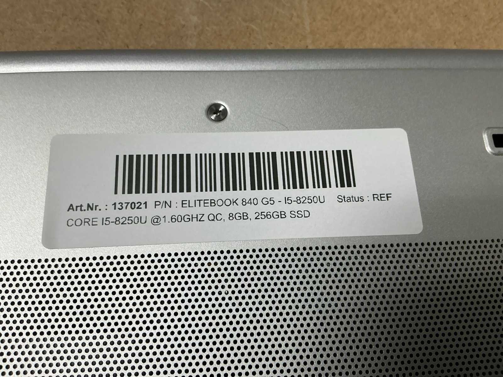 Laptops, HP EliteBook 840 G5, CPU: Intel Core i5-8250U @1.60GHz QC, MEM: 8GB, SSD: 256GB, no adapter, cosmetic damage ( cleaned and tested ) [ID: 137021] Merk: HP