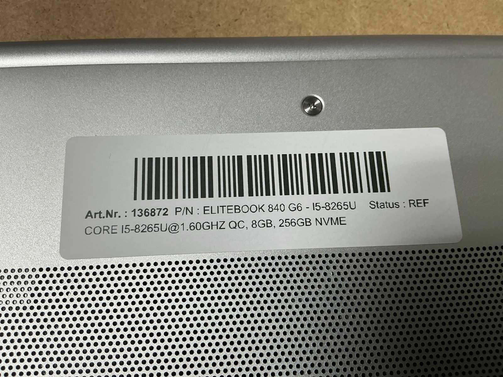 Laptops, HP ProBook 840 G6, CPU: Intel Core i5-8265U@1.60GHz QC, MEM: 8GB, SSD: 256GB NVMe, no adapter ( cleaned and tested ) [ID: 136872] Merk: HP
