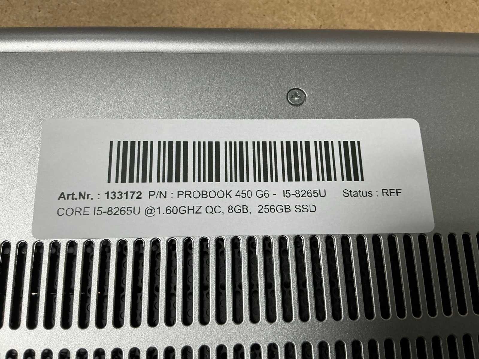 Laptops, Cosmetic damage: Scratches on laptop case, , HP ProBook 450 G6, CPU: Intel Core i5-8265U @1.60GHz QC, MEM: 8GB, SSD: 256GB, no adapter ( cleaned and tested ) [ID: 133172] Merk: HP