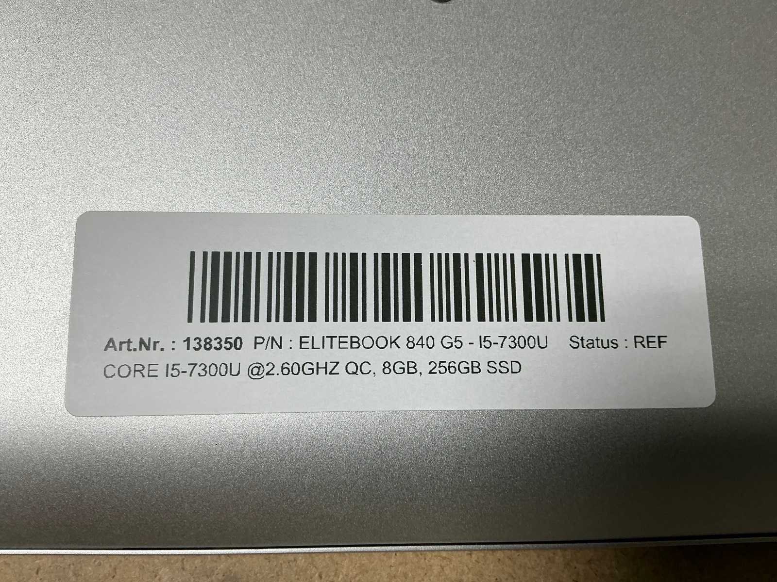 Laptops, HP EliteBook 840 G5, CPU: Intel Core i5-7300U @2.60GHz QC, MEM: 8GB, SSD: 256GB, no adapter ( cleaned and tested ) [ID: 138350] Merk: HP