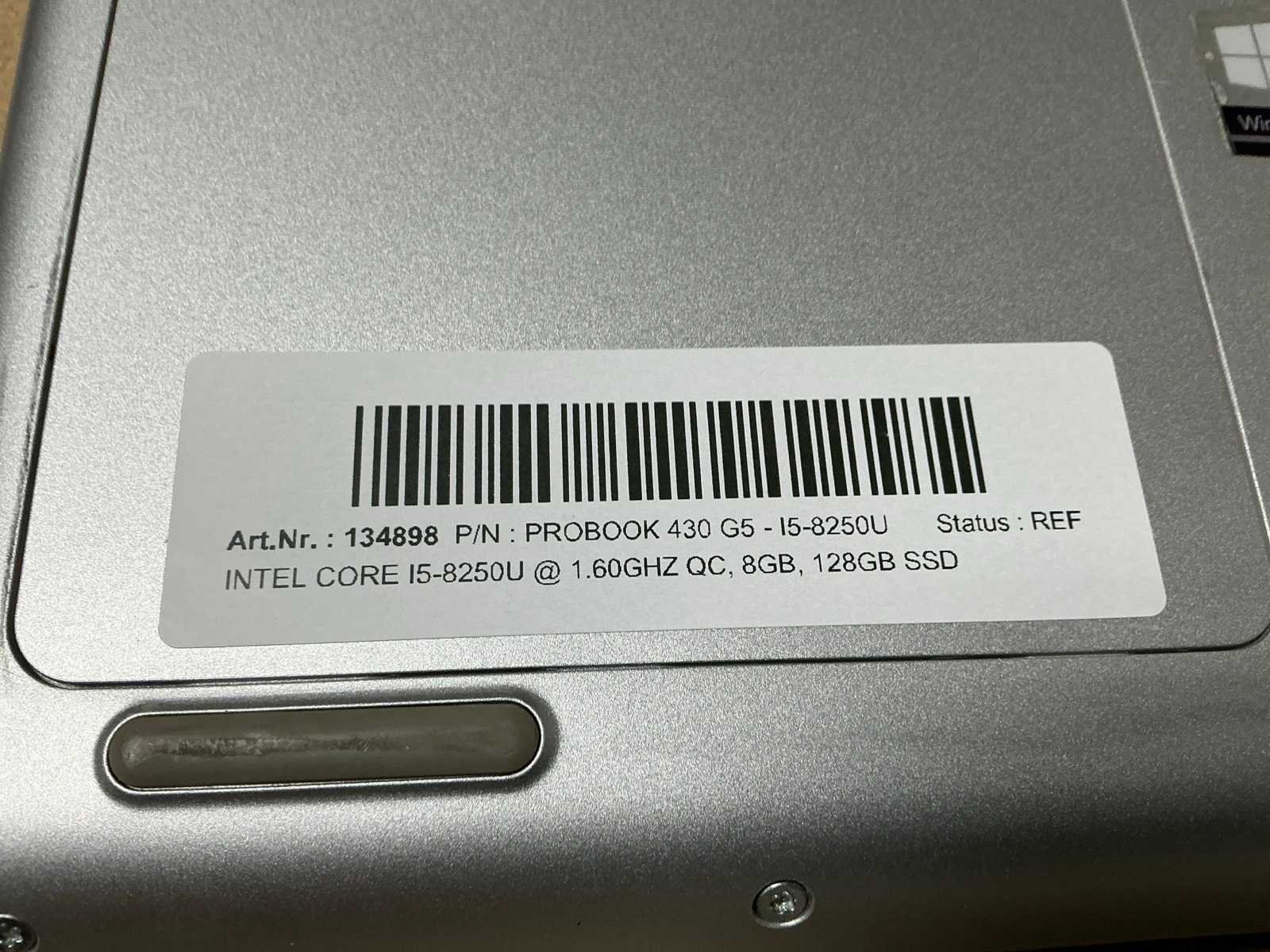 Laptops, HP PROBOOK 430 G5, CPU: Intel Core i5-82050U @ 1.60GHz QC, MEM: 8GB, SSD: 128GB, no adapter ( cleaned and tested ) [ID: 134898] Merk: HP