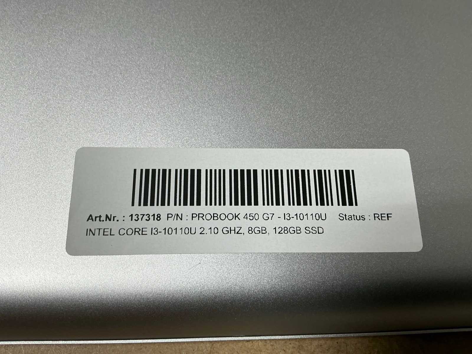 Laptops, ProBook 450 G7, CPU: Intel Core i3-10110U 2.10 GHz, MEM: 8GB, SSD: 128GB SSD, no adapter ( cleaned and tested ) [ID: 137318] Merk: HP