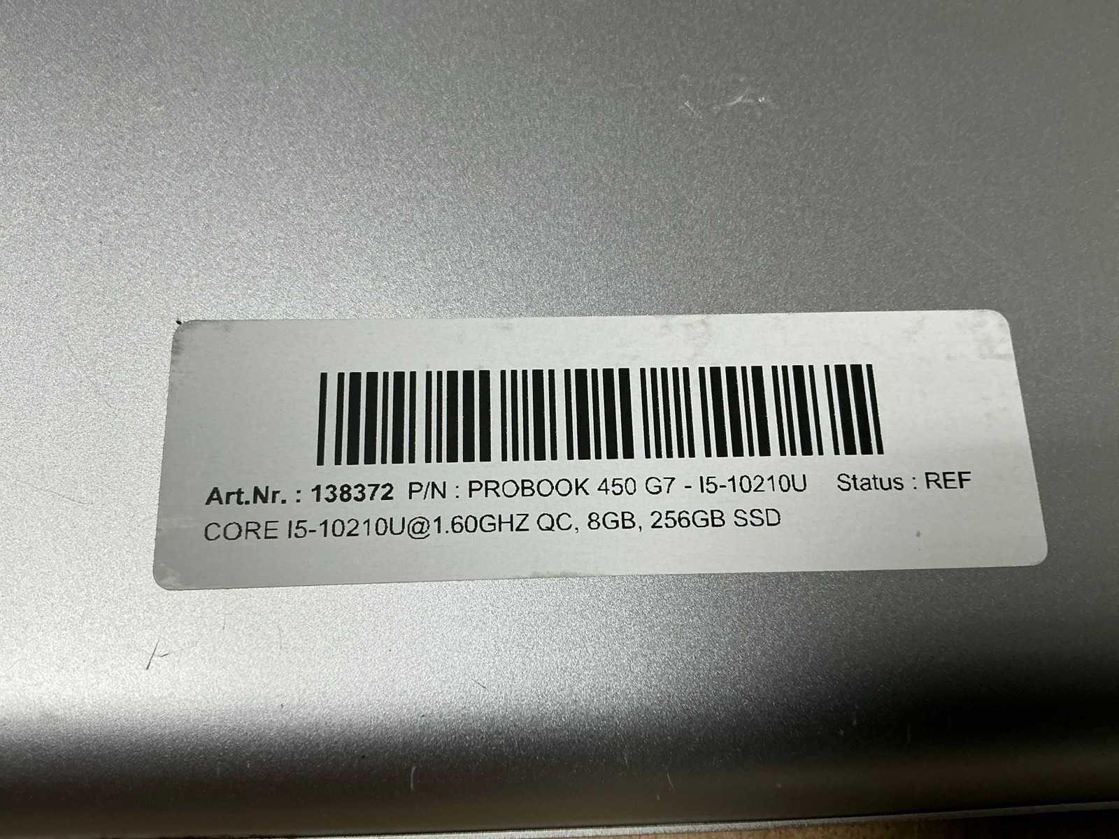 Laptops, HP ProBook 450 G7, CPU: Intel Core i5-10210U@1.60Ghz QC , MEM: 8GB, SSD: 256GB, linker USB poort defect, no adapter ( cleaned and tested ) [ID: 138372] Merk: HP