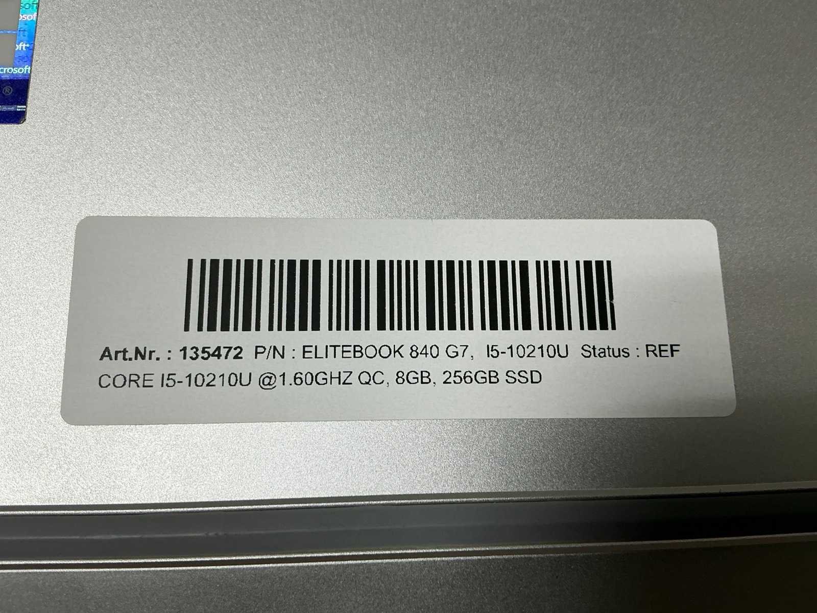 Laptops, ELITEBOOK 840 G7, CPU: Intel Core i5-10210U @1.60GHz QC, MEM: 8GB, SSD : 256GB, damage on right corner, no adapter ( cleaned and tested ) [ID: 135472] Merk: HP