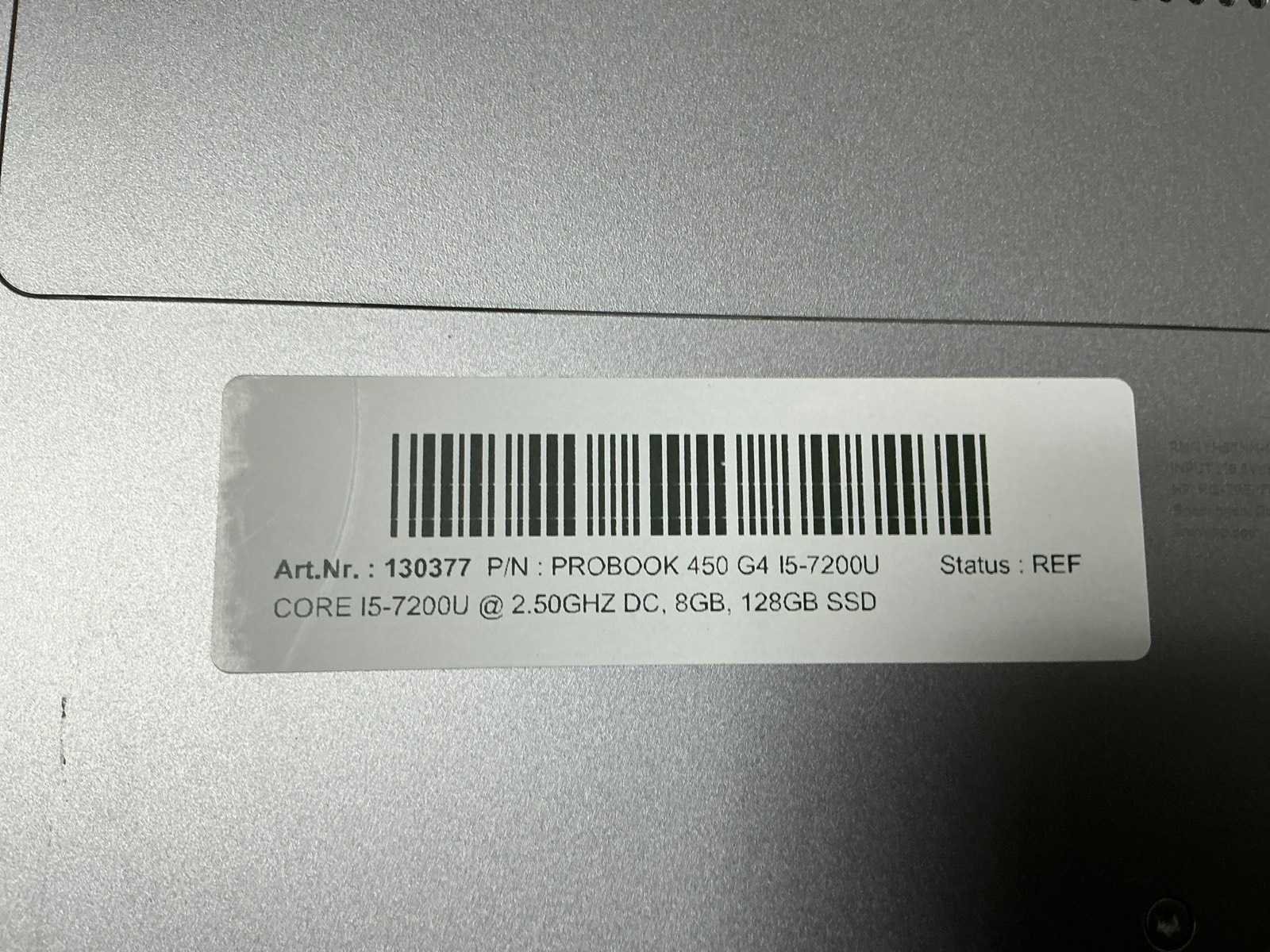 Laptops, HP ProBook 450 G4, CPU: Intel Core i5-7200U @ 2.50GHz DC, MEM: 8GB PC4-2133MHz, SSD: 128GB M.2 2280 SATA, no adapter ( cleaned and tested ) [ID: 130377] Merk: HP