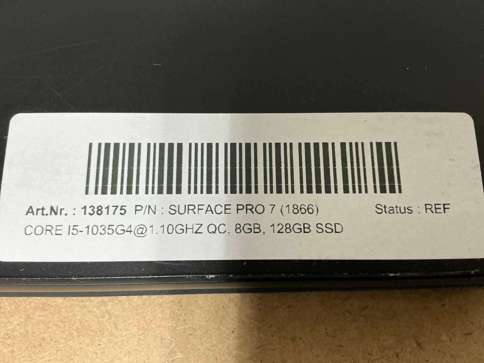 Laptops, Surface Pro 7, CPU: Intel Core i5-1035G4@1.10GHz QC, MEM: 8GB, SSD:128GB, Scherm donker aan de bovenkant en licht aan de onderkant, No adapter ( cleaned and tested ) [ID: 138175] Merk: MICROSOFT