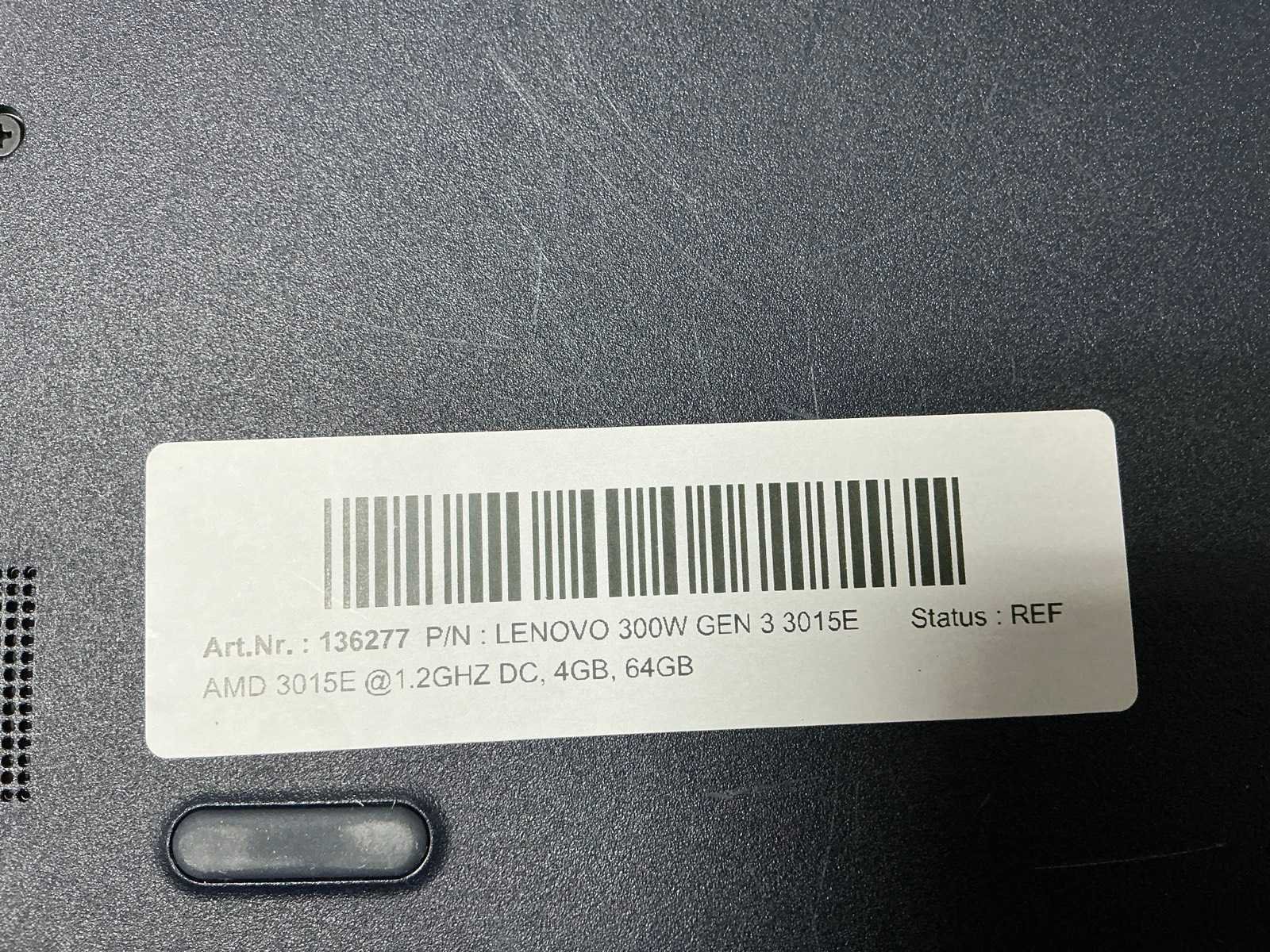 Laptops, Lenovo 300W Gen 3, CPU: AMD 3015e @1.2Ghz DC, MEM: 4GB, SSD: 64GB, no adapter ( cleaned and tested ) [ID: 136277] Merk: LENOVO