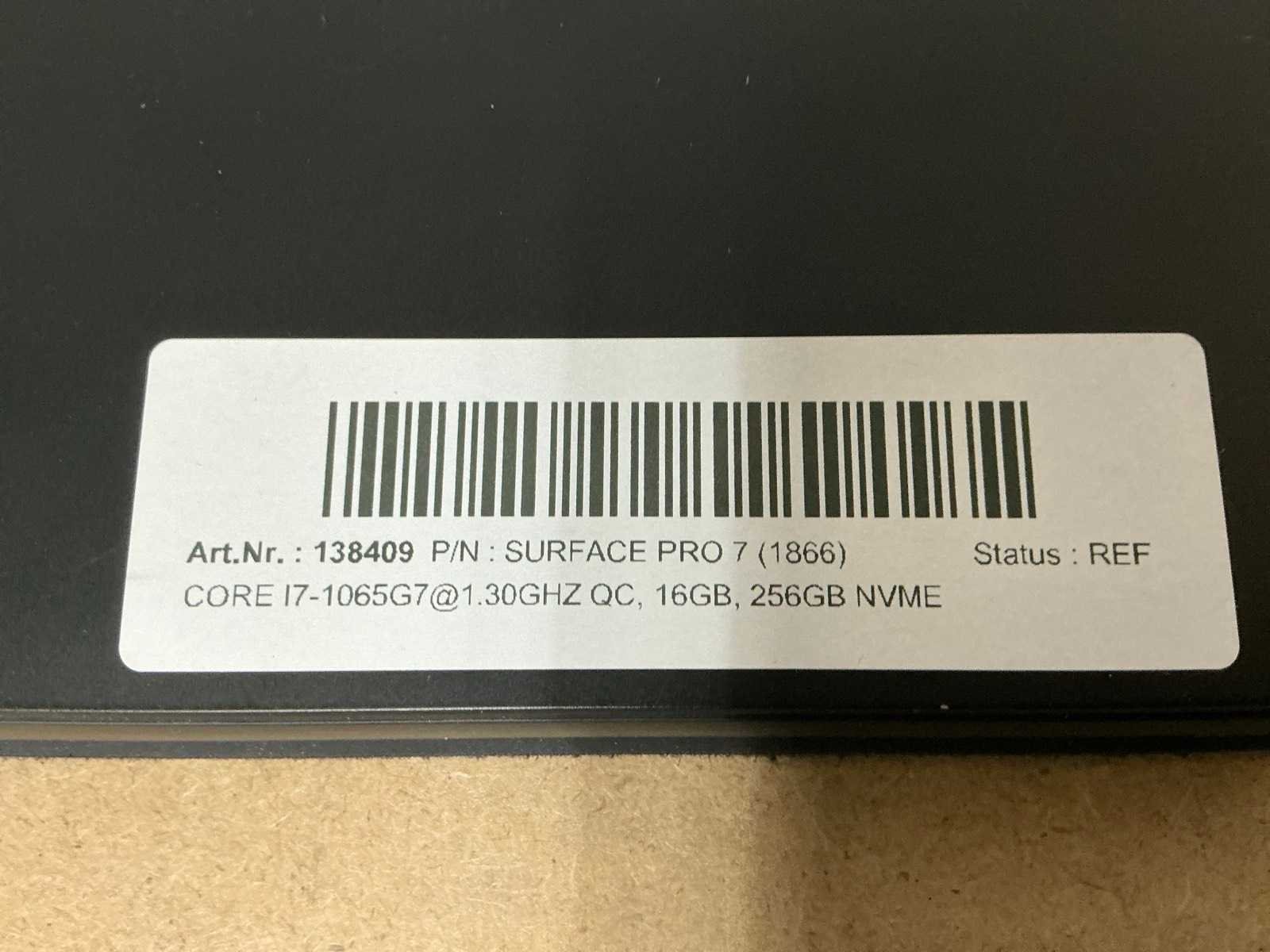 Laptops, Surface Pro 7, CPU: Intel Core i7-1065G7@1.30GHz QC, MEM: 16GB, SSD: 256GB NVMe, no adapter ( cleaned and tested ) [ID: 138409] Merk: MICROSOFT