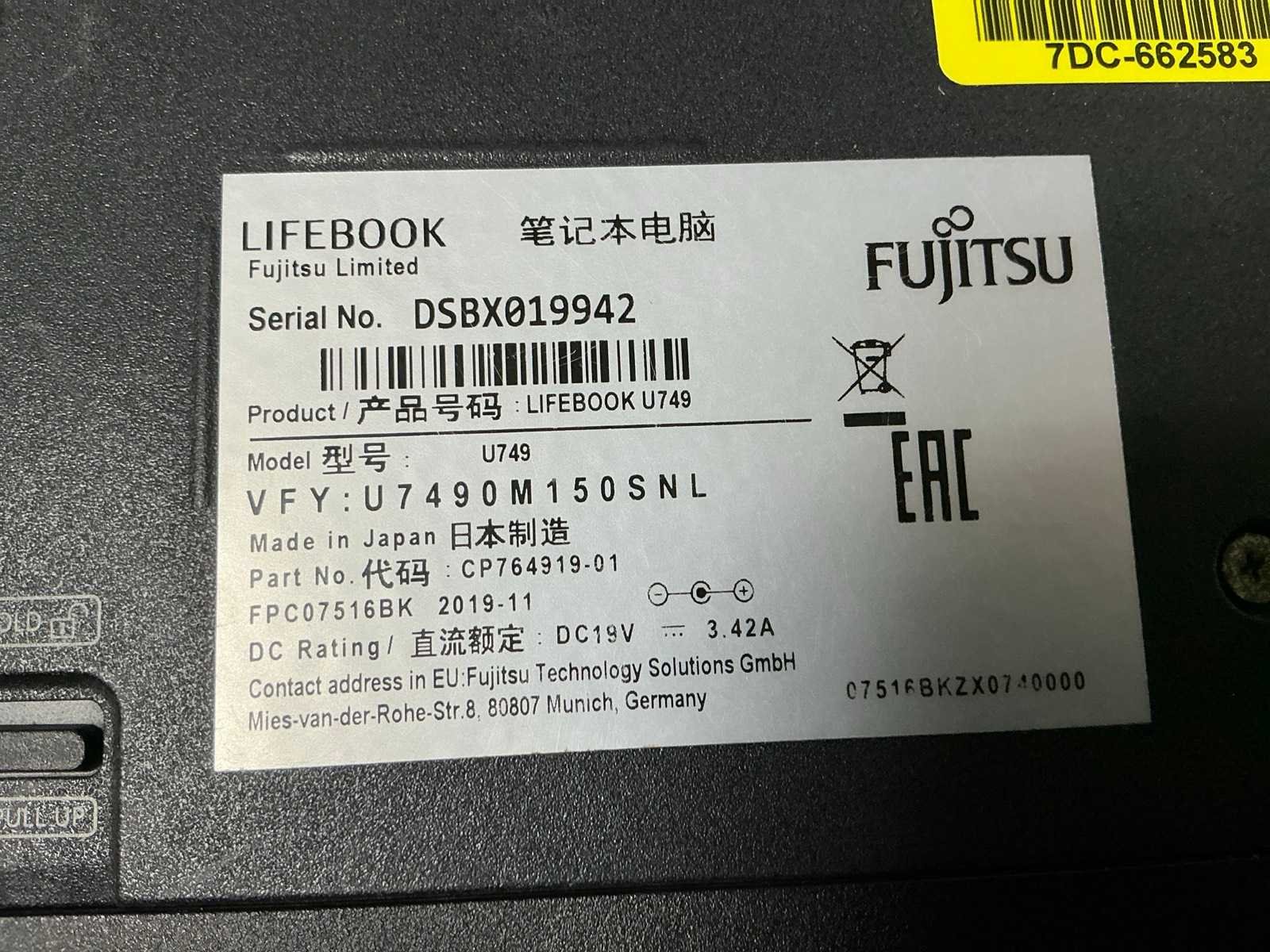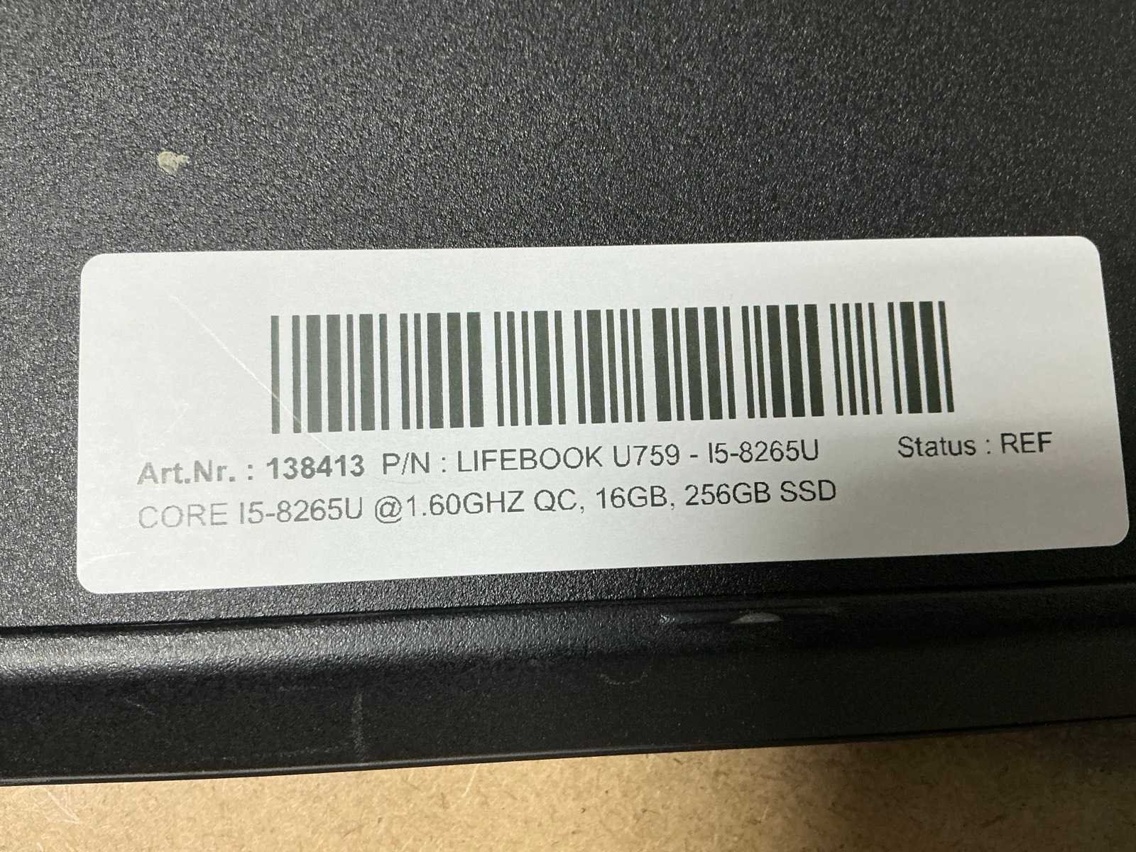 Laptops, Fujitsu Lifebook u759, CPU: Intel COre i5-8265U @1.60GHz, MEM: 16GB, SSD: 256GB, no adapter ( cleaned and tested ) [ID: 138413] Merk: FUJITSU