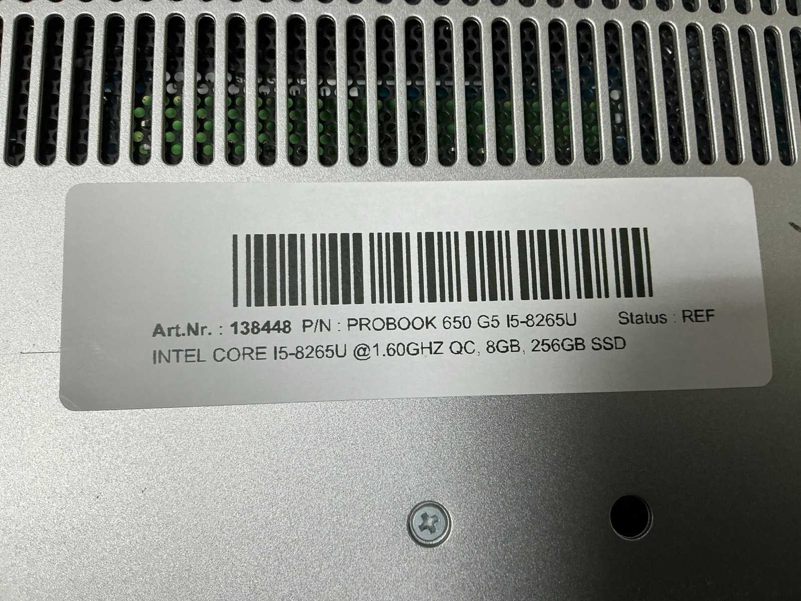 Laptops, Probook 650 G5, CPU: Intel Core i5-8265U @1.60GHz QC, MEM: 8GB, SSD: 256GB, Cosmetic Damage: left bottom en top corner and card slot, no adapter ( cleaned and tested ) [ID: 138448] Merk: HP