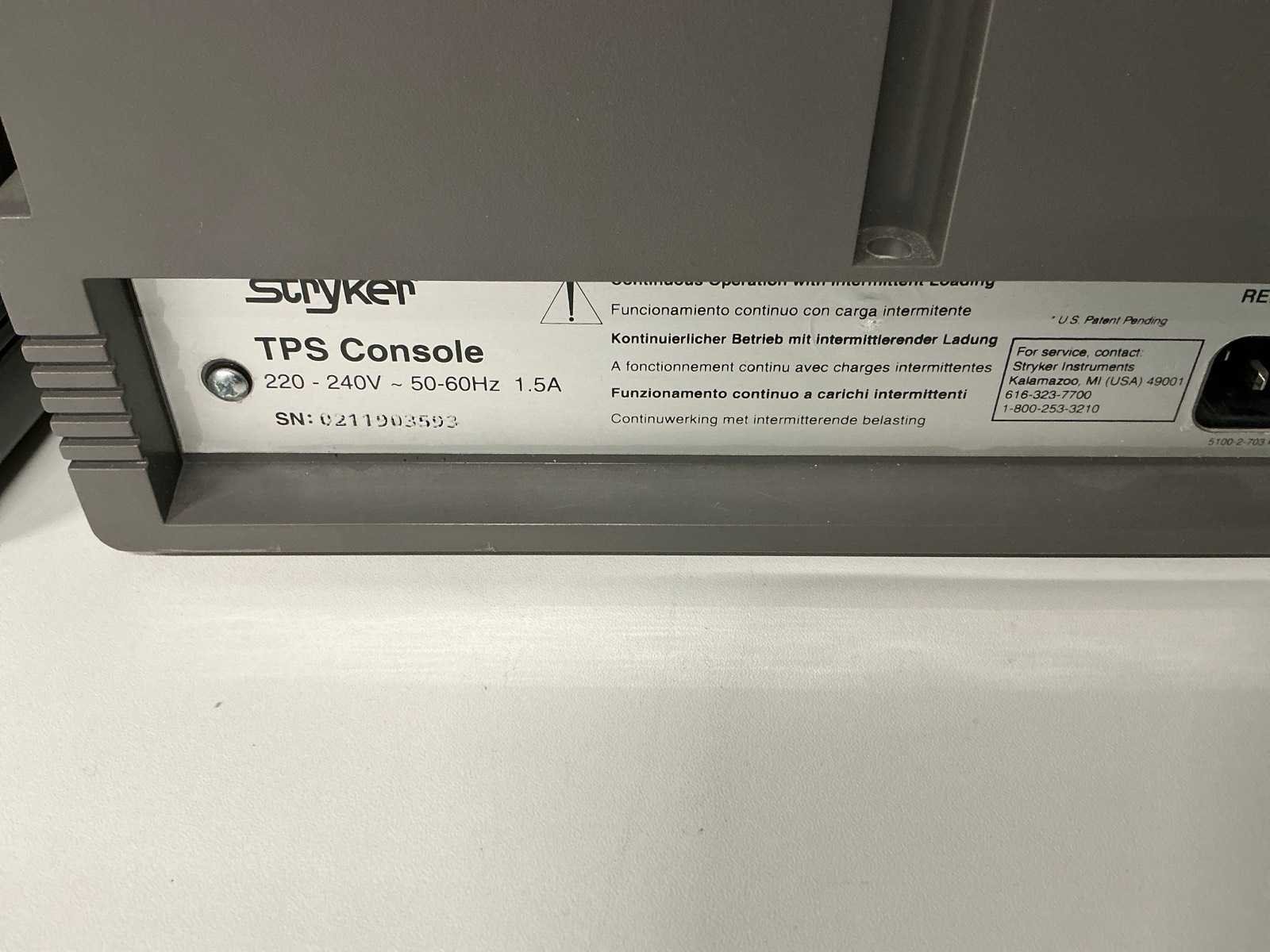 Merk: Stryker Type: TPS Serienummer: 0211903593 GS Code: 11606