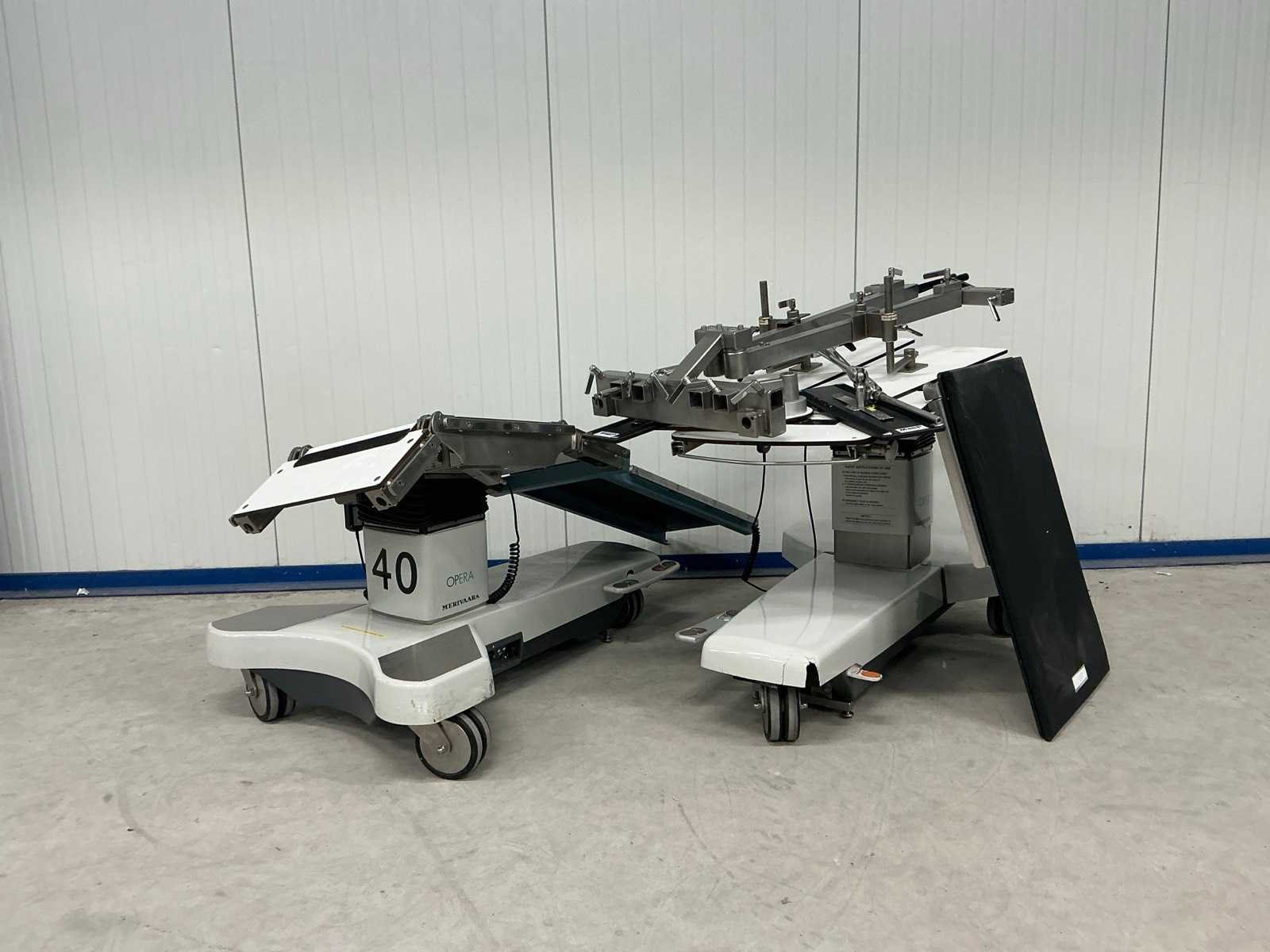 2 operatietafels met diverse onderdelen. De operatietafels zijn niet getest. OK Tafel Merk: Merivaara Type: Opera GS Code: 10590