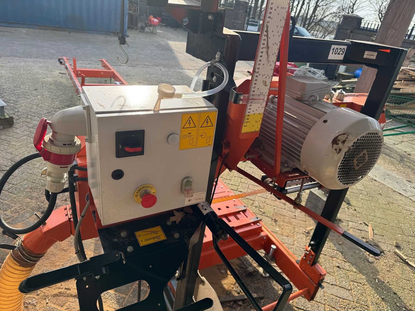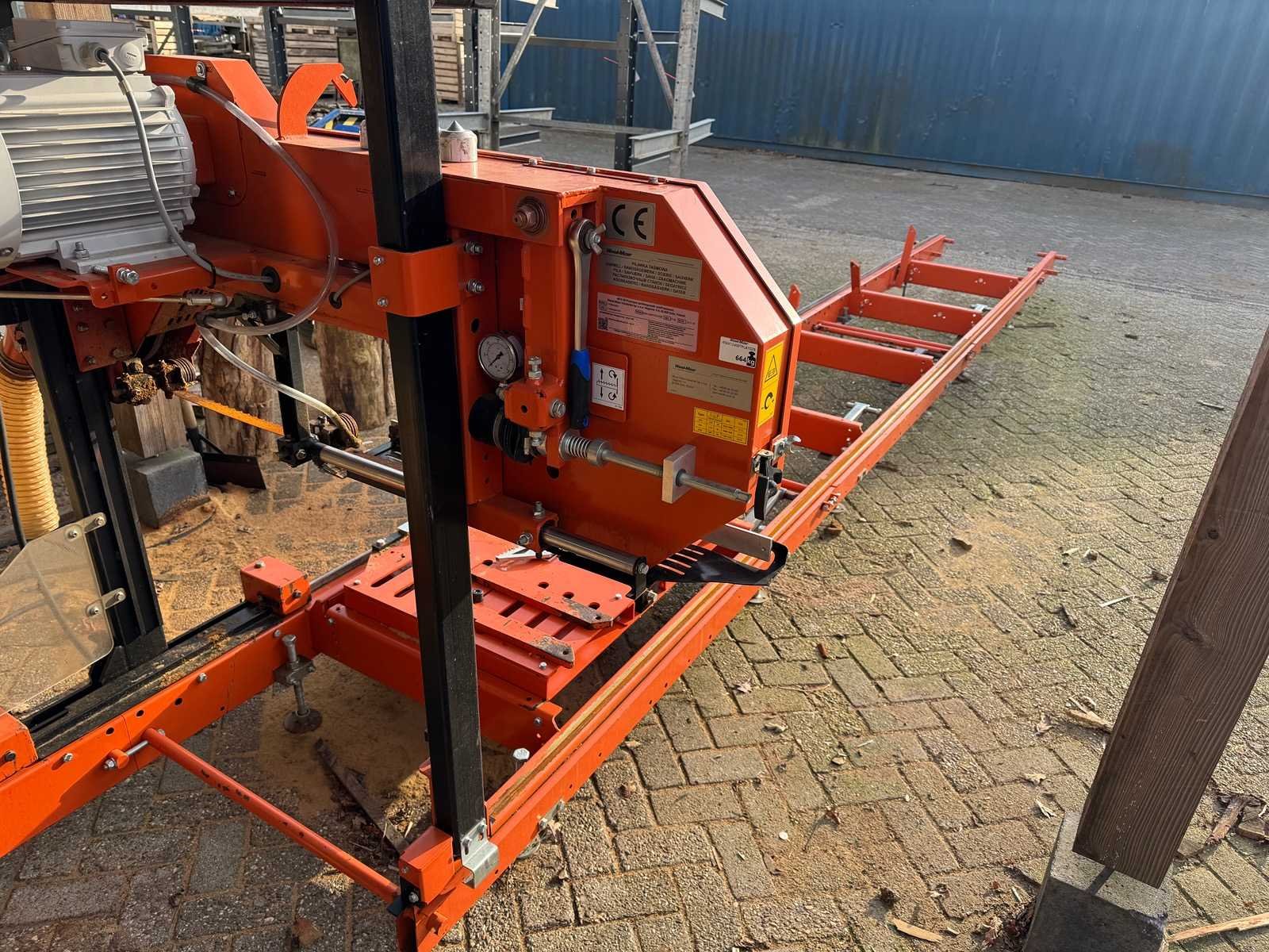 Lintzaagmachine met elektromotor. Machine heeft bouwjaar 2019 en in 2024 voor het eerst in gebruik genomen. Enkel gebruikt als Demo; Maximale zaaglengte 6,10 meter en wordt geleverd met 2 extra lengte delen ( niet op foto ); Voorzien van extra 90 graden aanslagen, klem eenheden en uitricht gereedschap; voorzien van originele woodmizer Cookie mizer voor het zagen van schijven bouwjaar 2024; Wordt door verkoper gedemonteerd/klaargezet op pallets en er is een heftruck aanwezig om te laden. Merk: Woodmizer Type: LT15 Bouwjaar: 2019 Zaagblad afm. l: 4100mm Aansluiting: 400V
