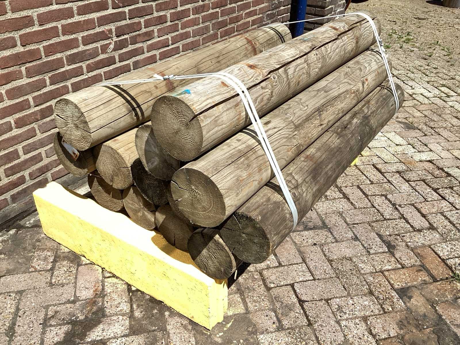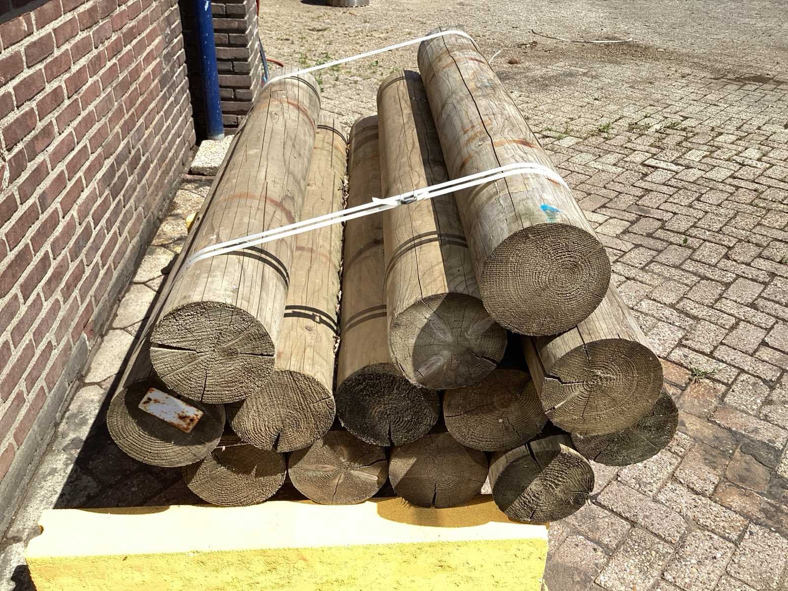 Grenen palen 13 stuks ; diameter 195 millimeter Merk: Grenen Type: 700 x 1000 x 1500 mm Totale afmeting L: 1500mm Totale afmeting Breedte: 1000mm Totale afmeting Hoogte: 700mm