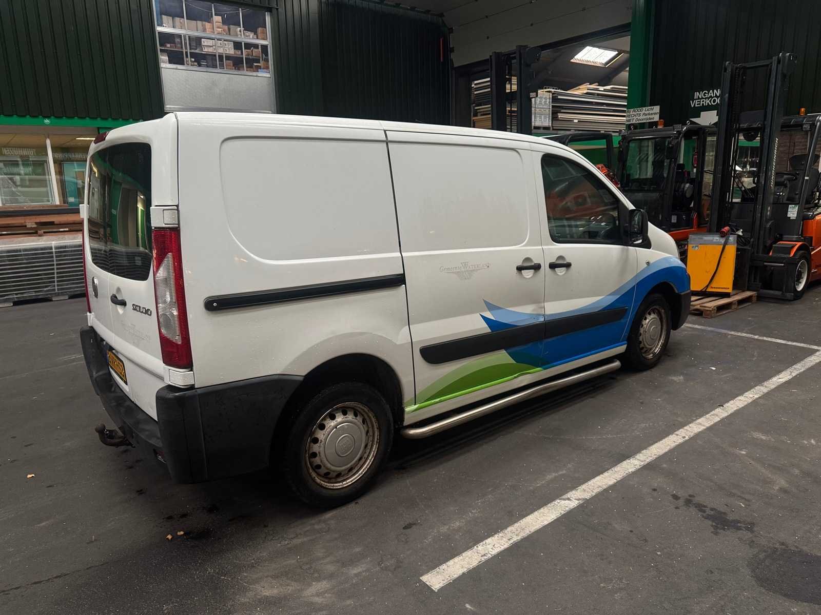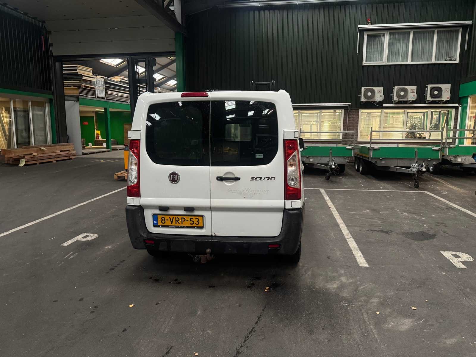 Gesloten opbouw; v.v. trekhaak (geremd max. 2000 kg / ongeremd 750 kg); laadruimte afmeting 2250x1400 (tussen de wielkasten) x1300mm; houten vloer met gebruikerssporen; metalen stellingkast; zijschuifdeur; dubbele achterdeuren; radio/cd met AUX; airco en verwarming; dashboardverlichting; Kenteken: 8-VRP-53 Merk: Fiat Model: Scudo 2.0 JTD Bouwjaar: 2011 Afgelezen kilometerstand: 312029km Vermogen (kW): 94kW Brandstof: Diesel APK vervaldatum: 01-11-2025 Vermogen (pk): 128hp Aantal zitplaatsen: 3 Maximaal trekgewicht ongeremd: 750kg Maximaal trekgewicht geremd: 2000kg Kleur: wit Transmissie: Handgeschakeld Aantal deuren: 3 Ledig gewicht: 1661kg Aantal cilinders: 4 Start en rijdt: Start en rijdt Airconditioning: true