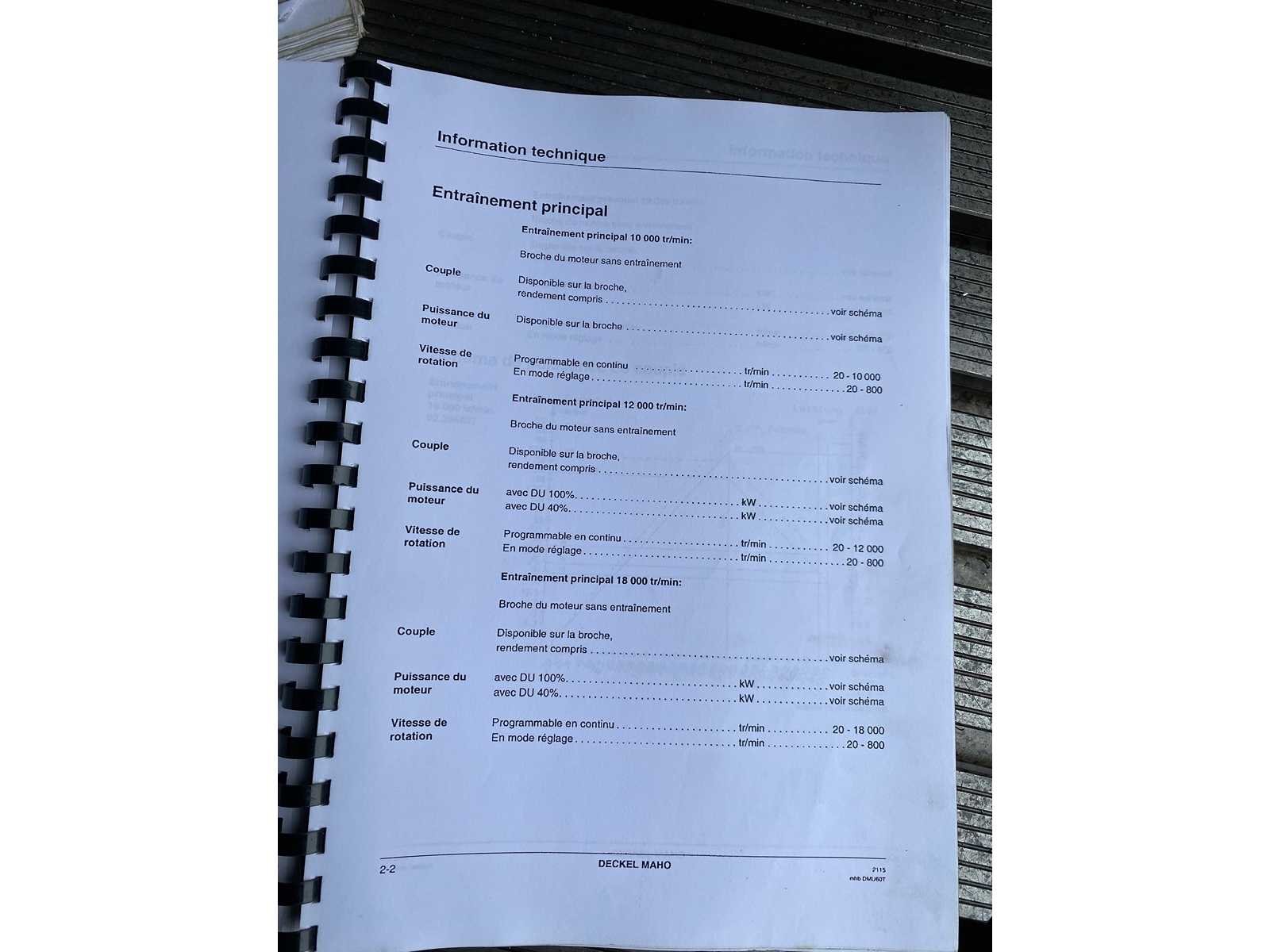 Incl. Filter Interlit SK200-760 Incl. Automatic toolholder Incl. Documents Incl. Video available Merk: Deckel MAHO Type: DMU 60T Bouwjaar: 2001 Verplaatsing x-as: 630mm Verplaatsing y-as: 560mm Verplaatsing z-as: 560mm Opname: ISO40 Snelheid tot n =: 10000rpm Tafel afmeting l: 1000mm Tafel afmeting b: 600mm Werkstuk gewicht max.: 400kg Machinegewicht: 6700kg Afmeting l: 3500mm Afmeting b: 2400mm Afmeting h: 2200mm GS Code: 84.596.190