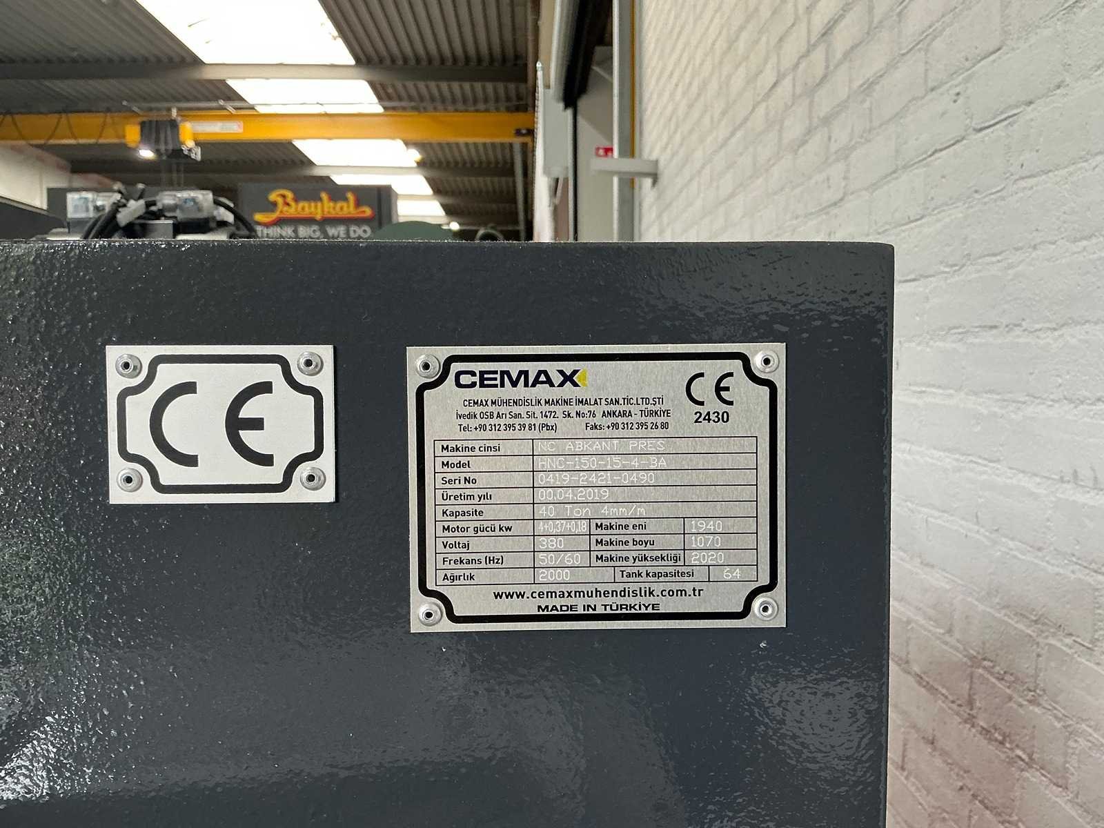 Video available! Merk: Cemax Type: HNC 1504 Bouwjaar: 2019 Serienummer: 0419-2421-0490 Capaciteit.: 40t Werklengte: 1500mm Voetbediening: true Achteraanslag elektrisch: true CNC-besturing, merk, type: Cemax Motorvermogen (kW): 4kW Machinegewicht: 2000kg Afmeting l: 1070mm Afmeting b: 1940mm Afmeting h: 2020mm GS Code: 84.622.900