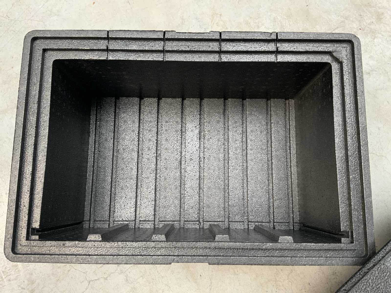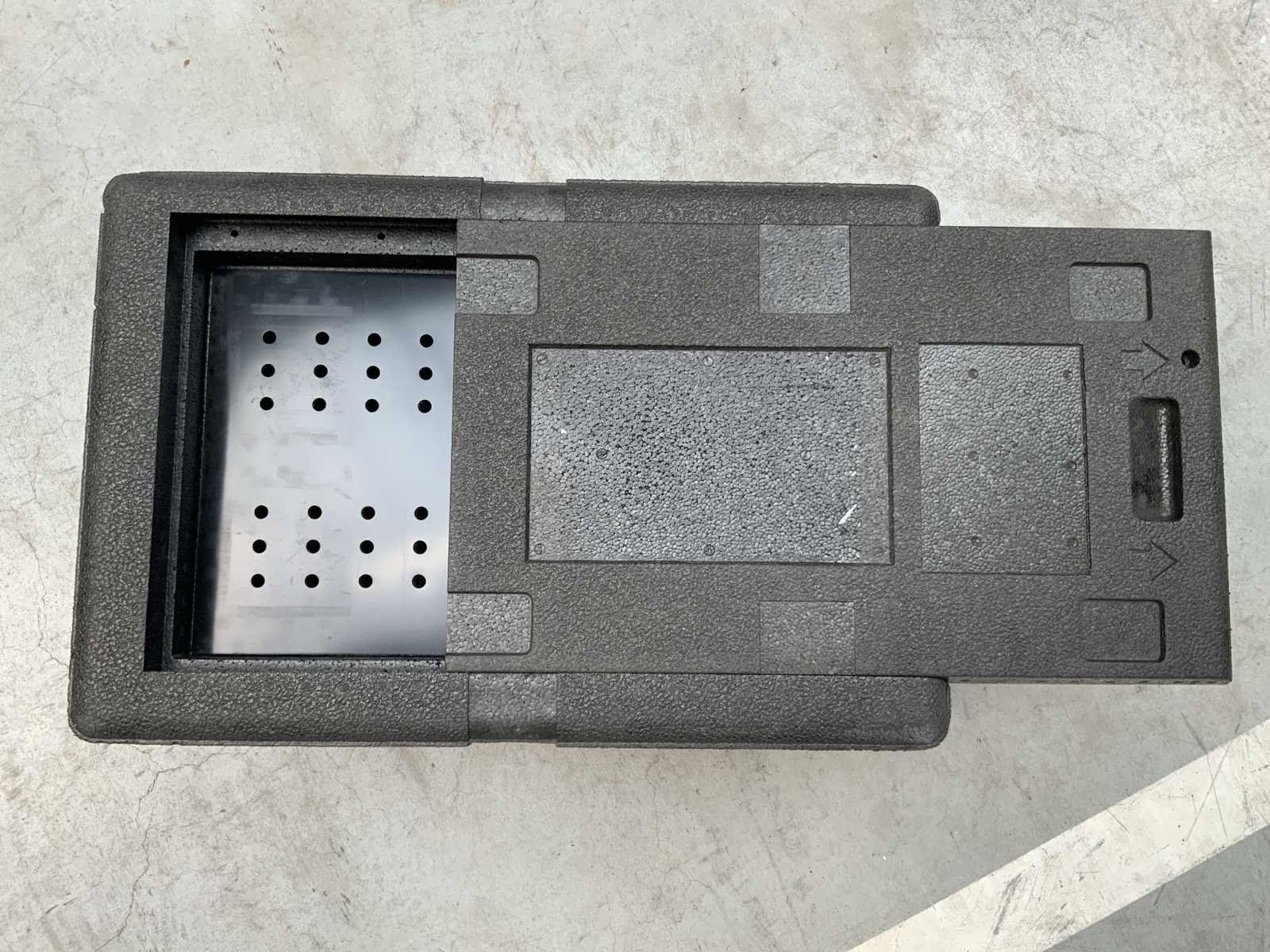 Buitenmaat ca. 600x400x350mm; kan beplakt zijn; zonder koel elementen; mogelijkheid om koel elementen op te slaan; let op! incompleet; deksel kan ontbreken; 2 varianten deksels gemixt; handvaten; gebruikerssporen; 2077