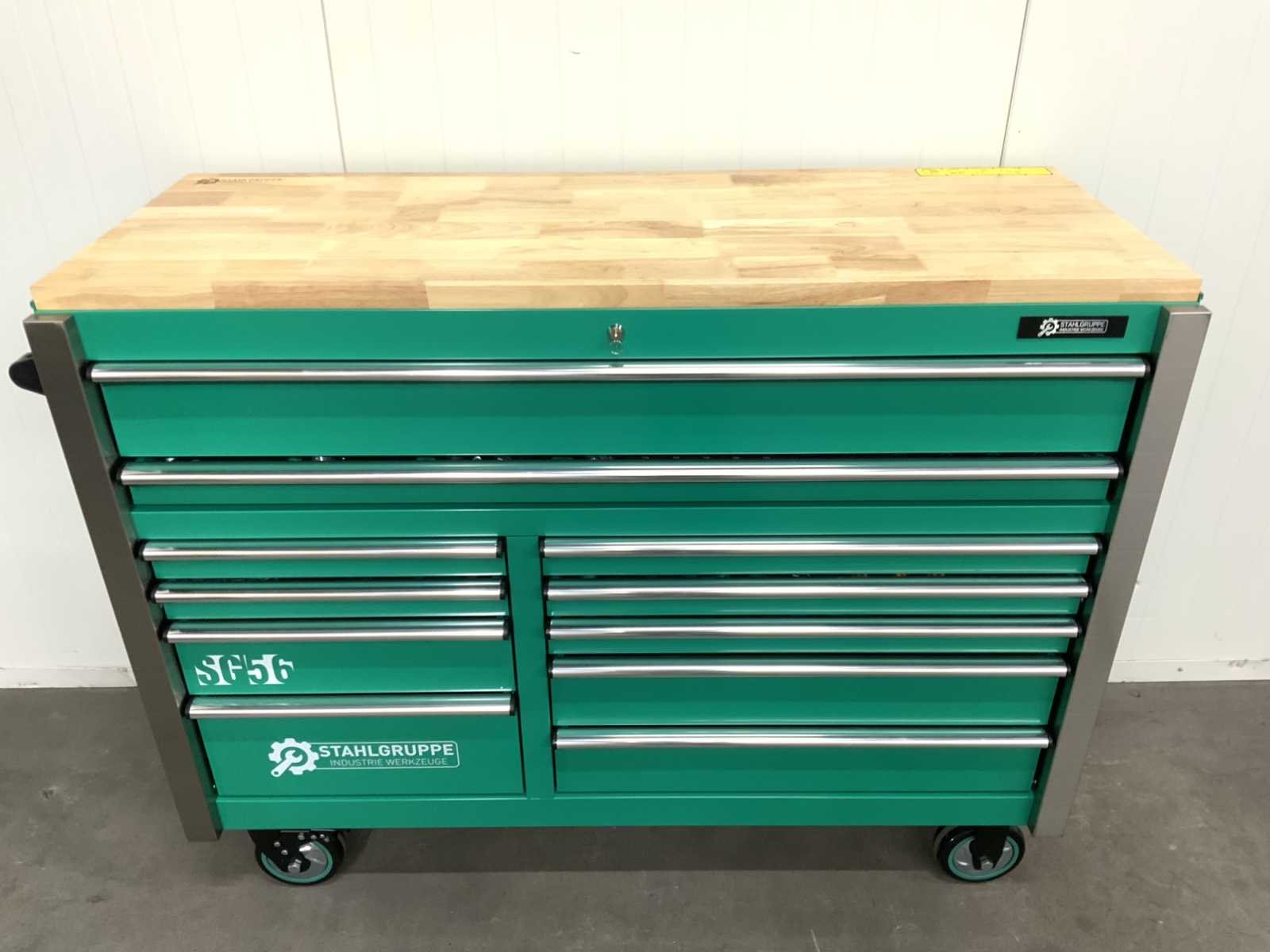 4 zwenkwielen, 11 laden, 9 gevuld, 386 pcs. Heavy Duty gereedschapswagen gebruik: voor professionals gereedschap: chroom-vanadium gereedschap inhoud: 29-delige ring-steeksleutel set (6 mm - 50 mm) rattelset en doppenset tot en met maat 50 3 ratelsleutel sets met doppen & bitsen (1/4”, 3/8” & 1/2”) 11-delige ring-ringsleutel set (6*7 mm - 30*32 mm) verstelbanre moersleutel 12-delige tangen set 2 hamers & 4 vijlen puntslag en beitel set 12 schroevendraaiers inbussleutels, Torxsleutels, precisiegereedschap 21-delige T-sleutelset 34-delige krachtdoppen set (12 mm - 50 mm) + Torx & inbus doppen & ratelsleutel 3/4,” LED-lamp, zaag, schaar, mes, meetgereedschappen enzovoort... in de originele verpakking Ongebruikt Merk: Stahlgruppe Type: Jumbo xxl prof + 4 in 1 set Bouwjaar: 2025 Aantal laden: 11 Met inhoud: true Eigen gewicht: 201kg Totale afmeting L: 1370mm Totale afmeting Breedte: 520mm Totale afmeting Hoogte: 1110mm