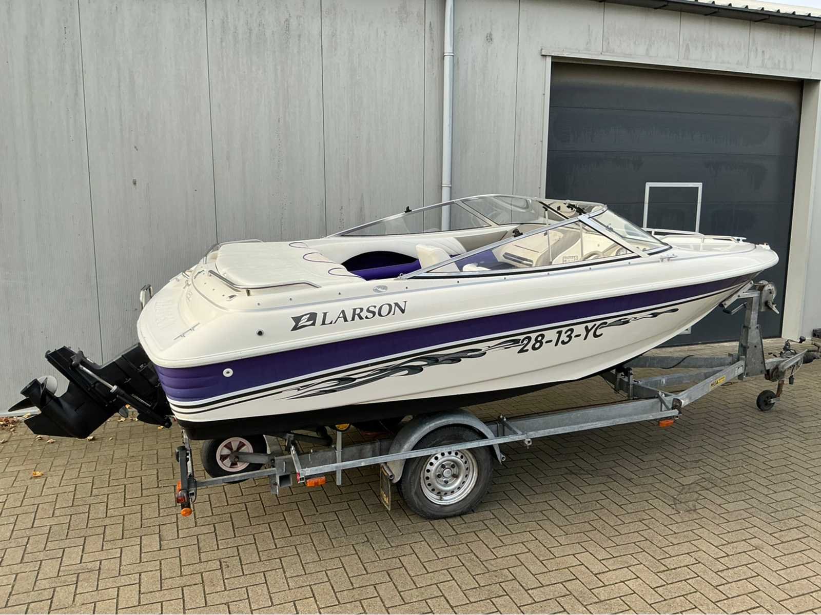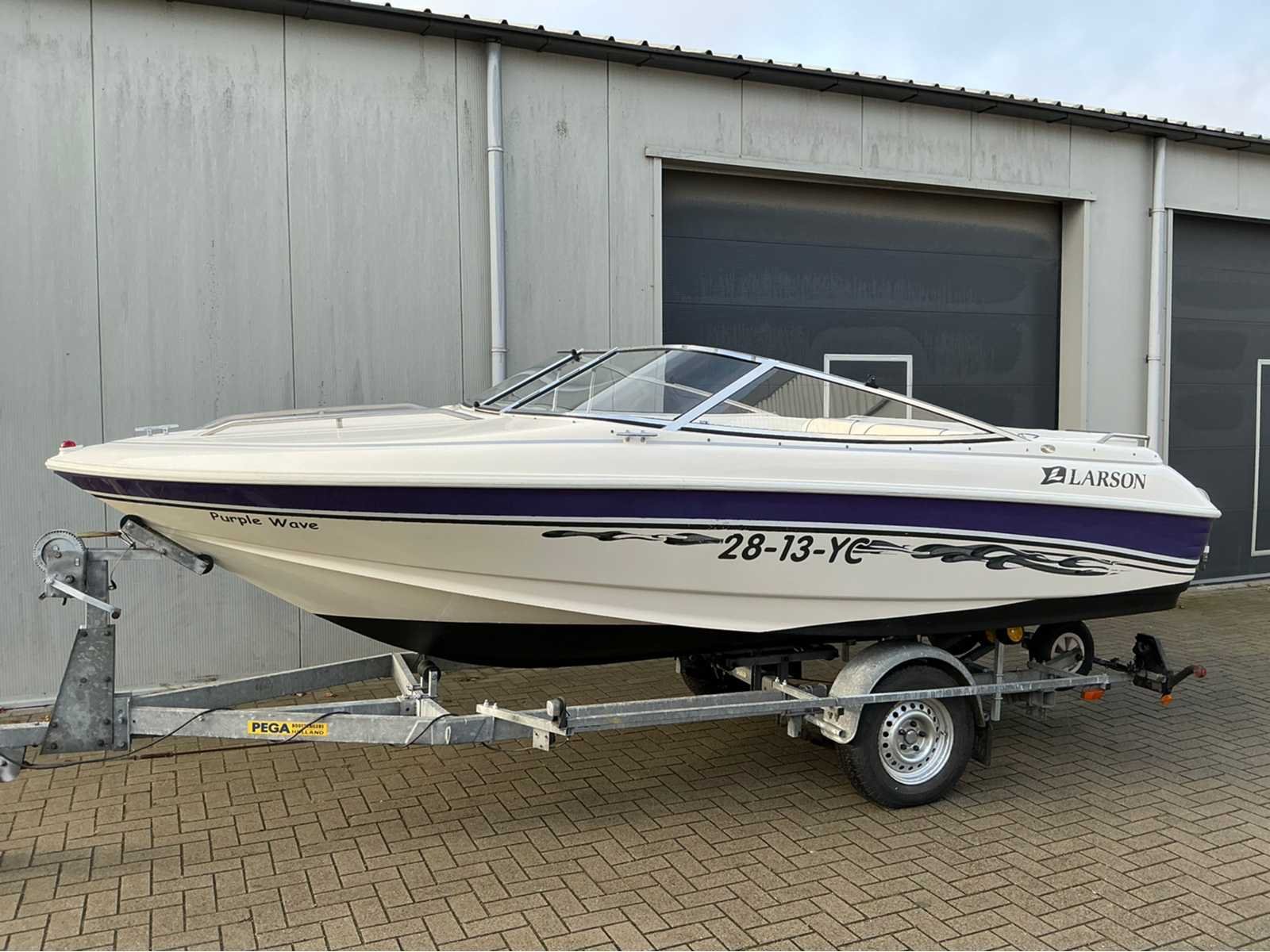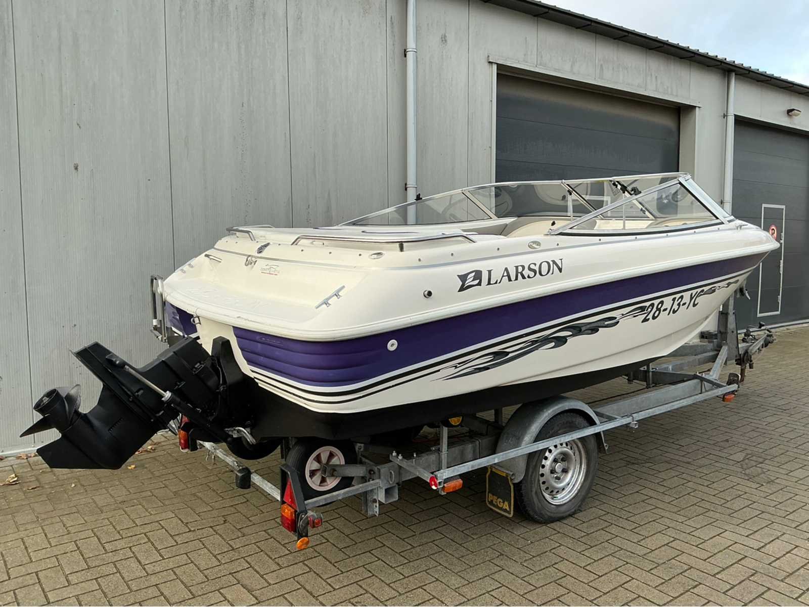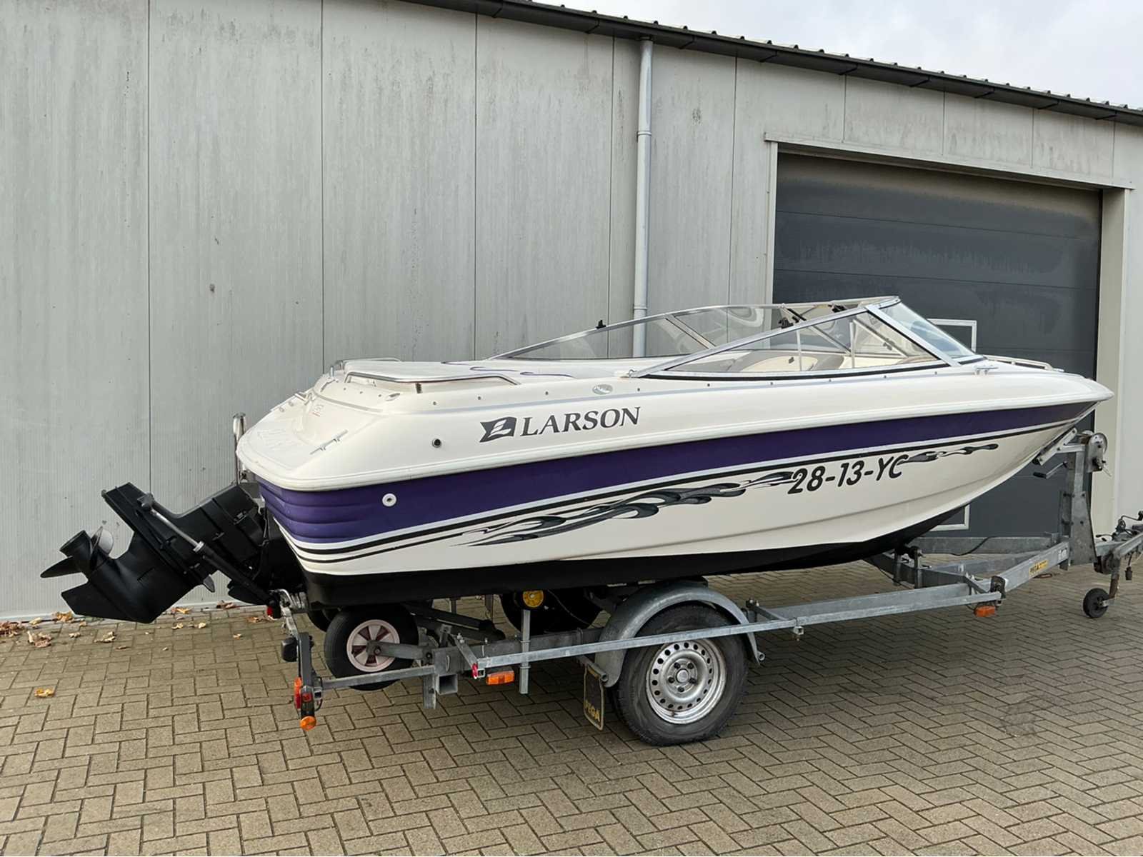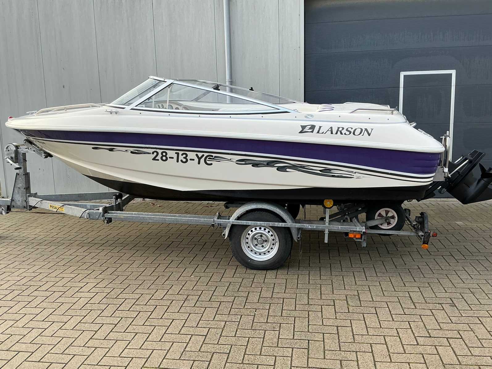 Afmeting boot: Lengte: 5.48m, breedte 2,36m. Totale lengte inclusief trailer: 6,20m Voorzien van: Mercruiser 3.0 TKS 4 cilinder 130 pk inboard benzine motor, powertrim, antifouling, inbouw brandstoftank, zwemtrap, diverse opbergruimtes, skiluik, navigatieverlichting, diverse zitplaatsen, open punt met zitplaatsen, dashboard met meters, afdekzeil, Pega Z1350 boottrailer met centreersysteem, handlier. Merk: Larson Type: 174 SEI Rompmateriaal: Polyester Brandstof: Benzine Bouwjaar: 1997 Serienummer: LAR473941697 Registratie nummer: 28-13-YC Type motor: Mercruiser 3.0 TKS Aantal cilinders: 4 Binnenboord: true Vermogen: 101kW Navigatieverlichting: true Trailer merk + type: Pega Z1350 Chassisnummer trailer: XLZ00000120010591