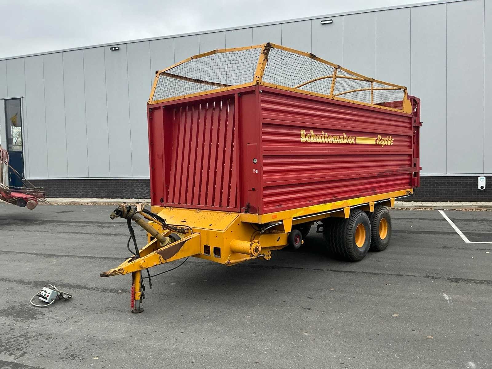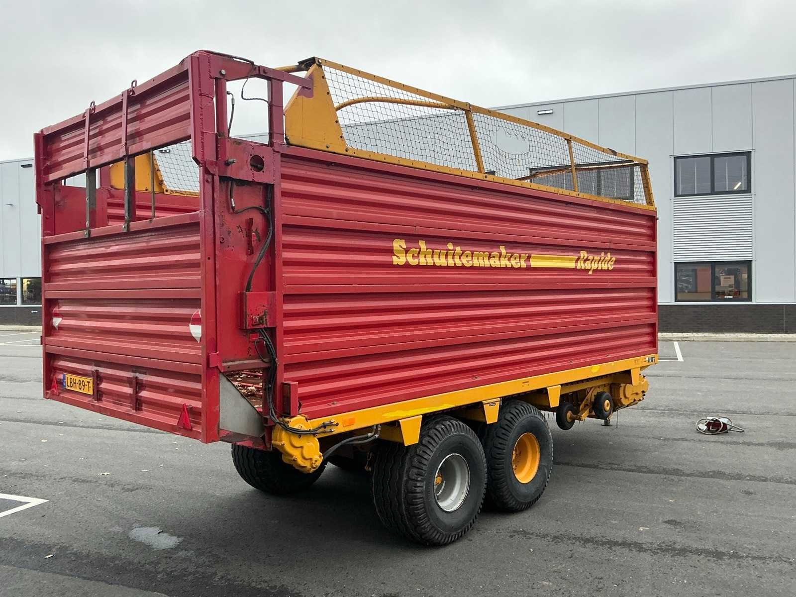 Elektrisch / hydraulische bediening; Banden 500/55R15.5; Achterklep is aangepast om zeer droog materiaal makkelijk te lossen; werkbreedte 1500mm Merk: Schuitemaker Type: RAPIDE 100 Bouwjaar: 1993 Kenteken: LBH-89-T Met onderstel: true Bandenmaat: 500/55-15.5 Totale afmeting L: 7200 Totale afmeting Breedte: 2500 Totale afmeting Hoogte: 3400
