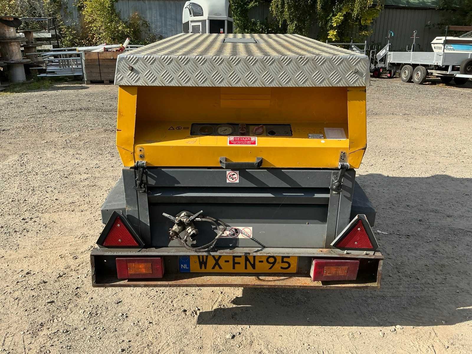 Dit kavel is voorzien van (kenteken)registratie, bij afhalen dient de koper zorg te dragen voor overschrijving of export van het in Nederland geregistreerde voertuig. Dit is niet altijd mogelijk op de afhaallocatie en dient door een derde partij te gebeuren. Let op! Hier kunnen extra kosten aan verbonden zijn. Merk: Atlas Copco Type: XAS5700 Bouwjaar: 2007 Chassisnummer: YA3-062250-70634024 Aantal assen: 1 Ledig gewicht: 780kg Laadvermogen: 70kg Datum eerste toelating: 2007-04-13 Datum eerste toelating (NL): 2007-04-13 Kenteken: WX-FN-95 Hoogte: 1350cm Lengte: 3050cm Breedte: 1300cm Nationaliteit documenten: Nederland Zelf rijdend exporteren: Yes
