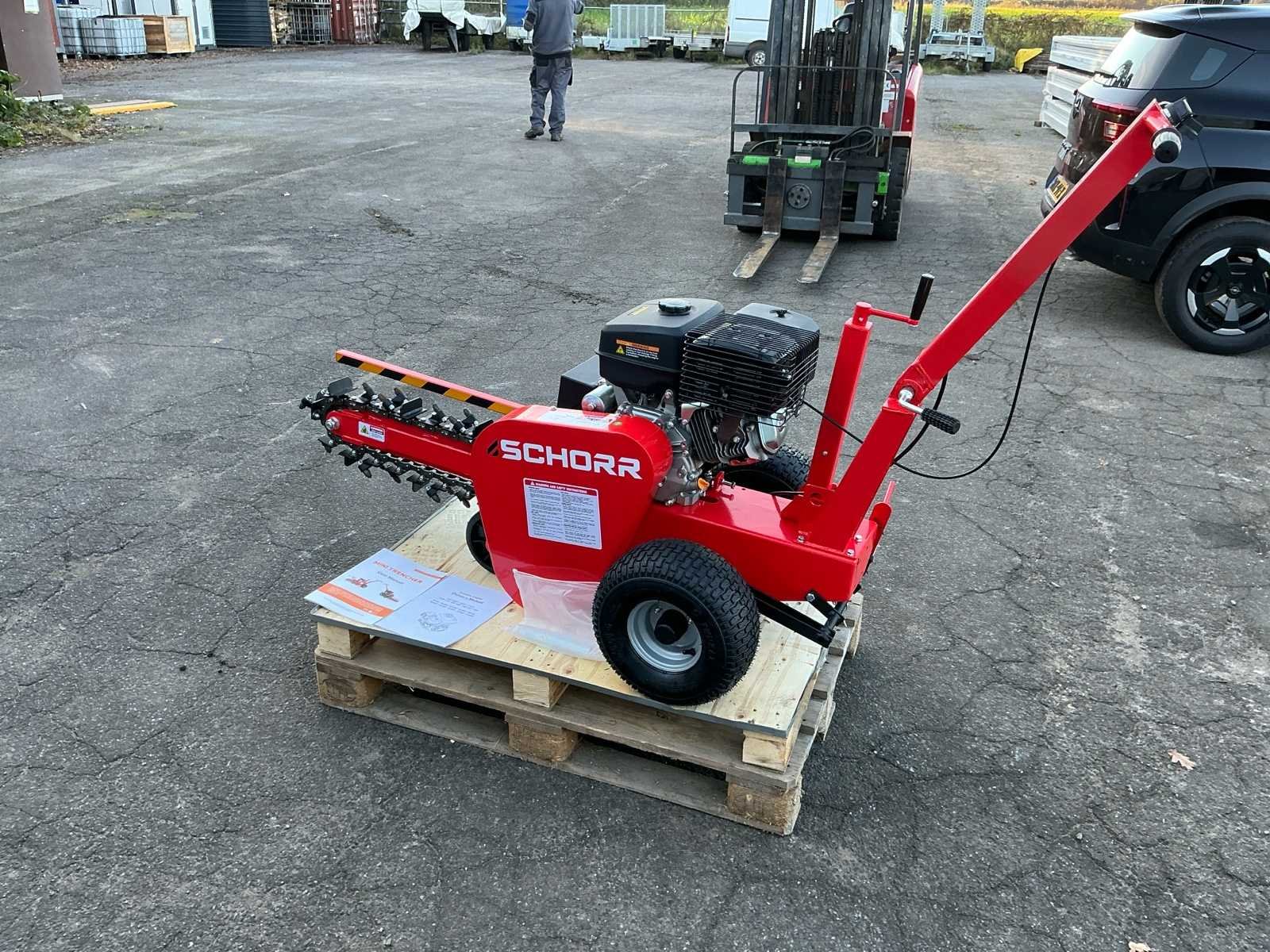 Merk: Schorr Type: Mini Trencher RR600GF Bouwjaar: 2024 Eigen gewicht: 182kg Freesdiepte verticaal: 800mm Vermogen (kW): 9kW