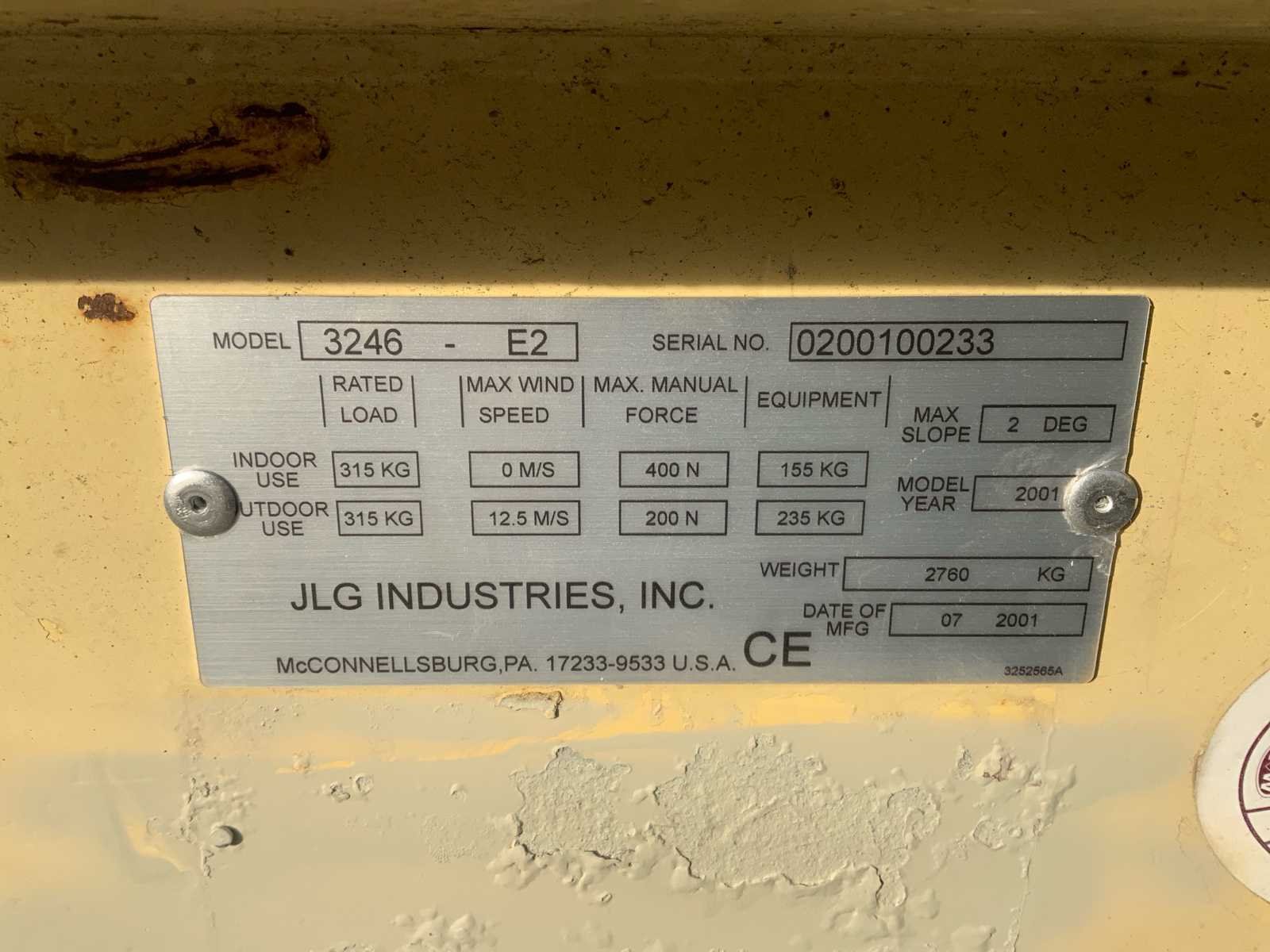 Platformhoogte 9,77 meter * aandrijving 2WD vol rubber banden * geïntrigeerde lader * voorzien van 1 sleutel * voorzien van hoogwerker boek Merk: JLG Type: 3246-E2 Bouwjaar: 2001 Serienummer: 0200100233 Elektrisch: true Schaarhoogwerker: true Werkhoogte: 12000mm Plateau afm. l: 2200mm Plateau afm. b: 1130mm Platform capaciteit: 2760kg Eigen gewicht: 315kg Totale afmeting L: 2350mm Totale afmeting Breedte: 1150mm Totale afmeting Hoogte: 2300mm Leveringsvoorwaarden: Gratis op vrachtwagen