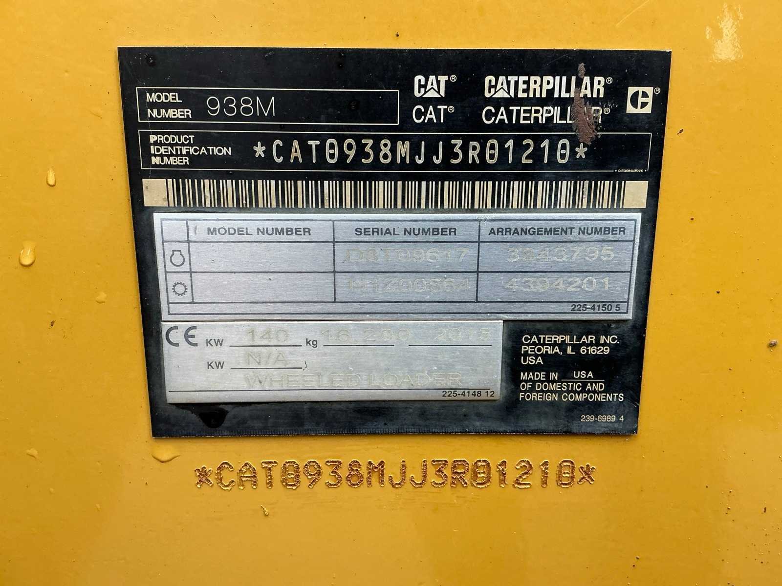 Voorzien van EPA Stage IV, snelwissel, automatisch vet smeersysteem, snelstuurfunctie, kruishendel, boordcomputer, airconditioning Merk: Caterpillar Type: 938M Bouwjaar: 2015 Serienummer: J3R01210 Merk motor: CAT C7.1 Kenteken: TTJ-10-K Aantal cilinders: 6 Brandstof: diesel Cabine: true Afgelezen urenstand: 9208