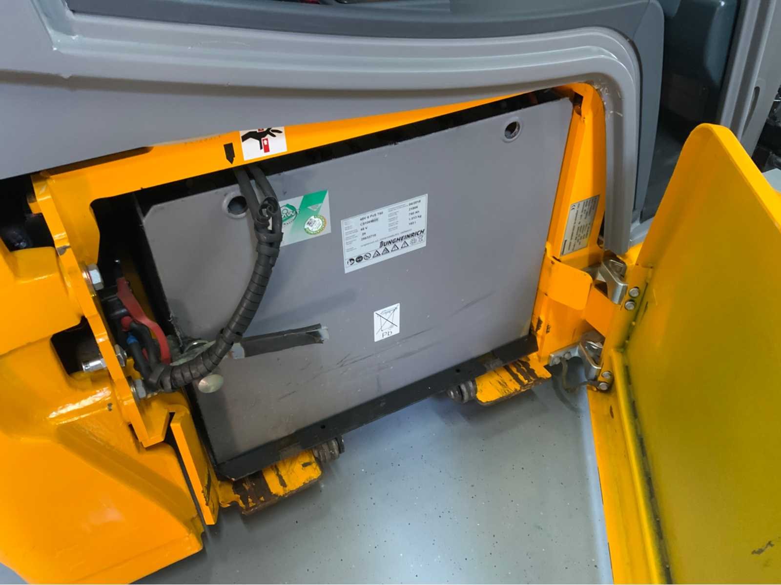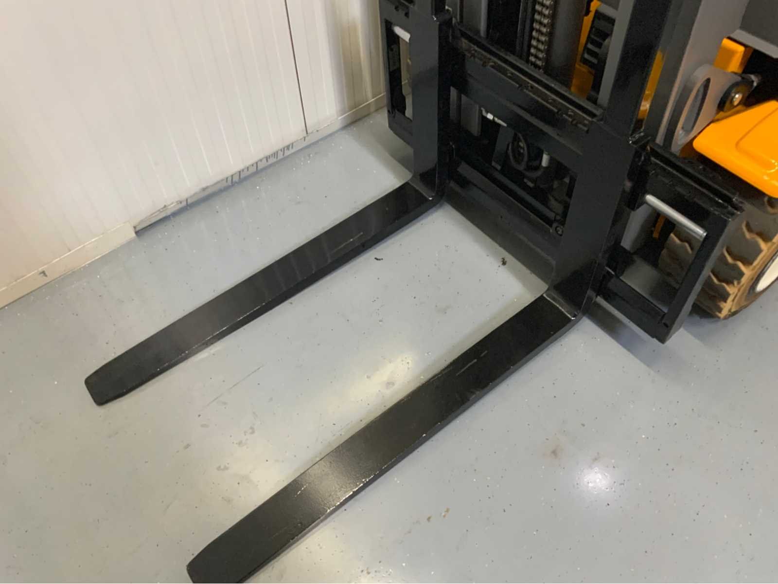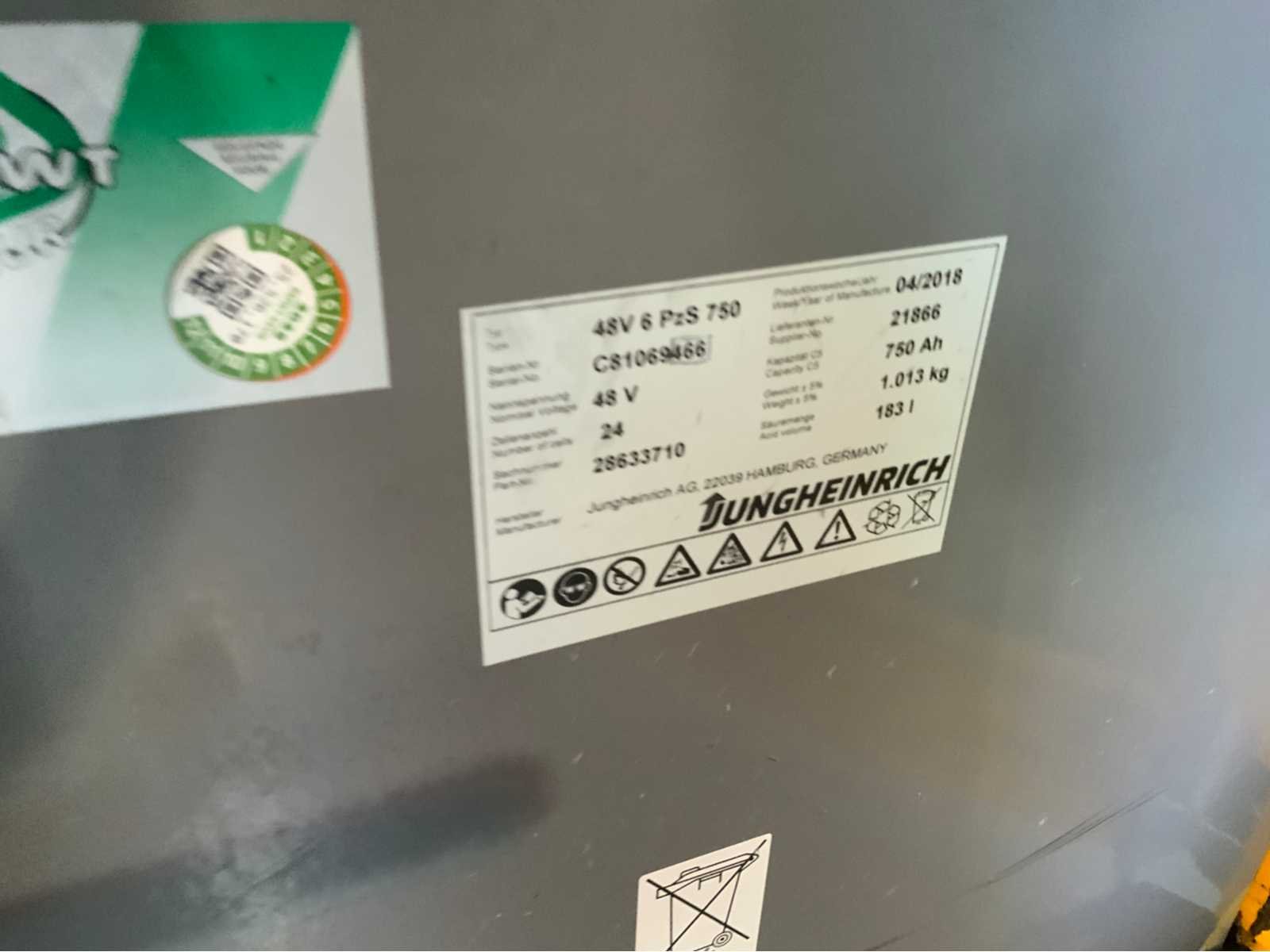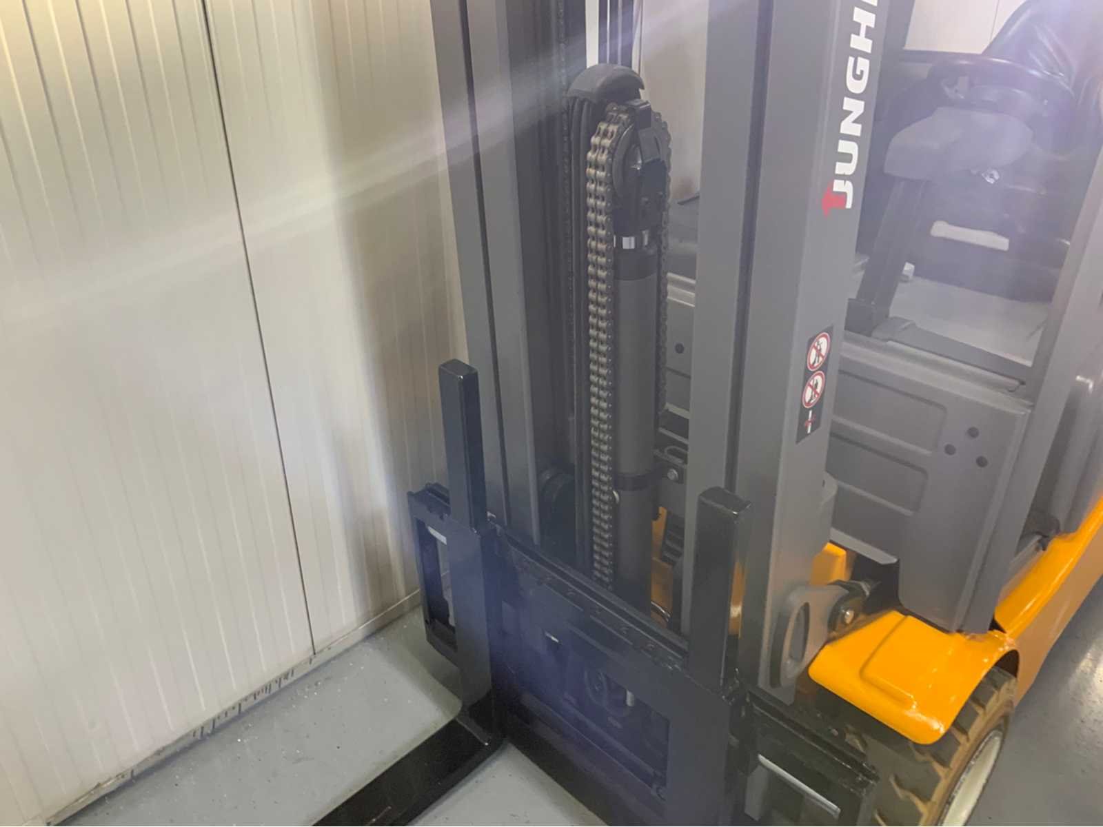 Extra opties: Led verlichting voorkant, Bluespot achterkant, Accu van 2018 Merk: Jungheinrich Type: EFG218 Bouwjaar: 2016 Brandstof: Elektrisch Mast: Triple Soort band: Volrubber banden Aantal wielen: 3 Free-lift: true Side-shift: true Triple mast: true Eigen gewicht: 3611kg Hefvermogen: 1800kg Lepellengte: 1150mm Hefhoogte: 4800mm Totale afmeting L: 3100mm Totale afmeting Breedte: 1100mm Totale afmeting Hoogte: 2200mm