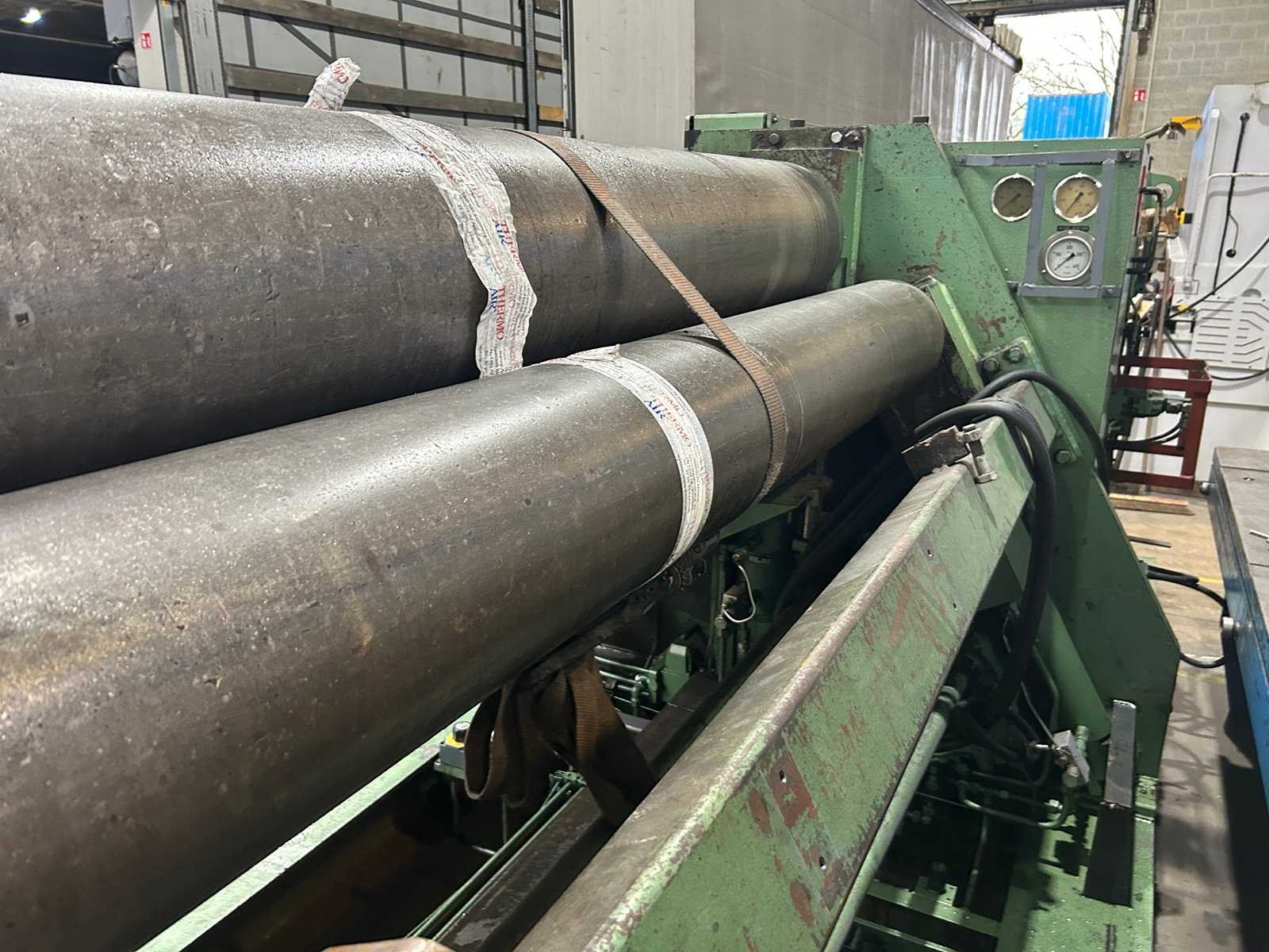 Incl. conical bending Incl. hydraulic retraction-assist Max. sheetthickness: 6mm (Inox) - 14mm (Alu) Video's available before dismantling. Merk: Haeusler Type: VRM HY L4000x6 Capaciteit lengte: 4100mm Max. plaatdikte: 6mm Aantal rollen: 4 Bovenrol Ø ca.: 350mm Rollengte: 4100mm Machinegewicht: 23000kg GS Code: 84.622.900