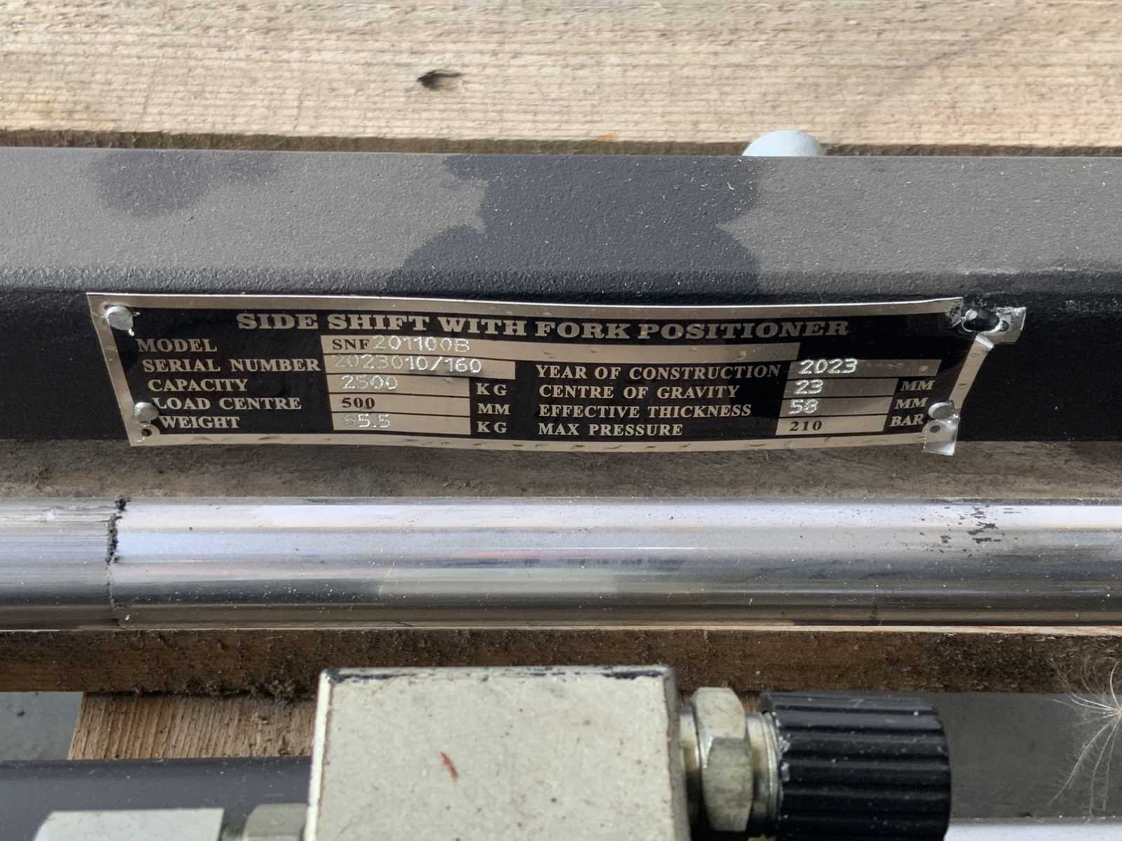 Type: Sideshift vorkversteller Bouwjaar: 2025 Eigen gewicht: 55kg Totale afmeting L: 1100mm Totale afmeting Breedte: 100mm Totale afmeting Hoogte: 480mm