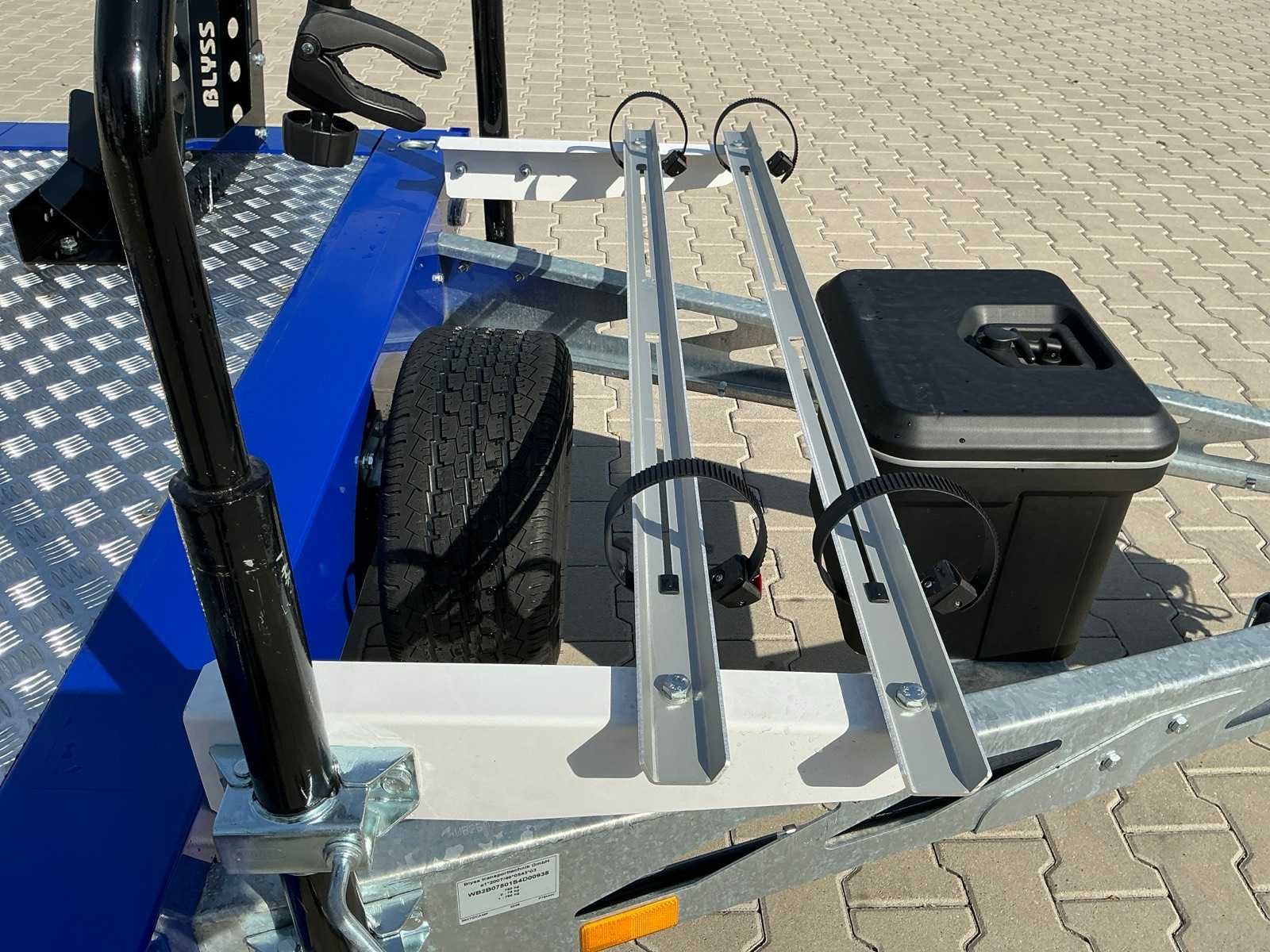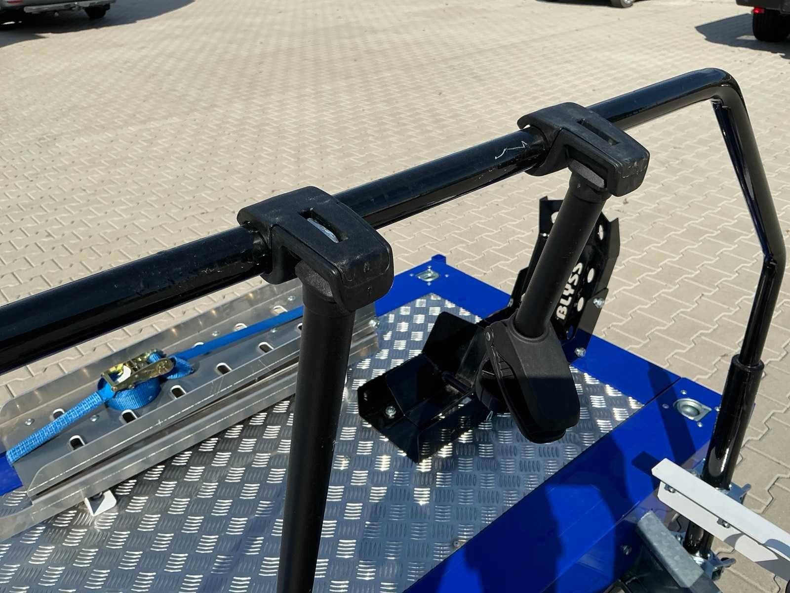 Voorzien van: aanhangwagen type MOTOCAMP, totaal gewicht 750kg ongeremd, laadvermogen 515kg, binnenafmetingen L: 200cm, B: 100cm, buitenafmetingen L: 282cm, B: 204cm, vloer Aluminium traanplaat, sjorpunten: 4 stuks, frame Stalen frame gelast, volledig thermisch verzinkt, blauw gelakt, banden 195/55R10C, aantal assen 1, steunwiel, reservewiel, fietsenrek met beugels, voor 2 fietsen, voorwielhouder vergrendelbaar en verstelbaar, opvouwbare aluminium oprijrail, opbergbox 41x33x34 cm voorzien van hoes, verlichting. Merk: Blyss Type: Motoraanhangwagen Model: Motocamp Bouwjaar: 2025 Chassisnummer: WB2B07501S4D00938 Aantal assen: 1 Laadbak afmeting l: 1000cm Laadbak afmeting b: 2000cm Laadvermogen: 750kg Hoogte: 600cm Lengte: 2800cm Breedte: 2000cm