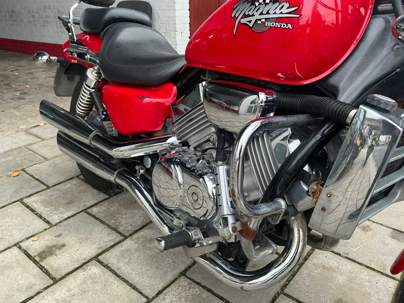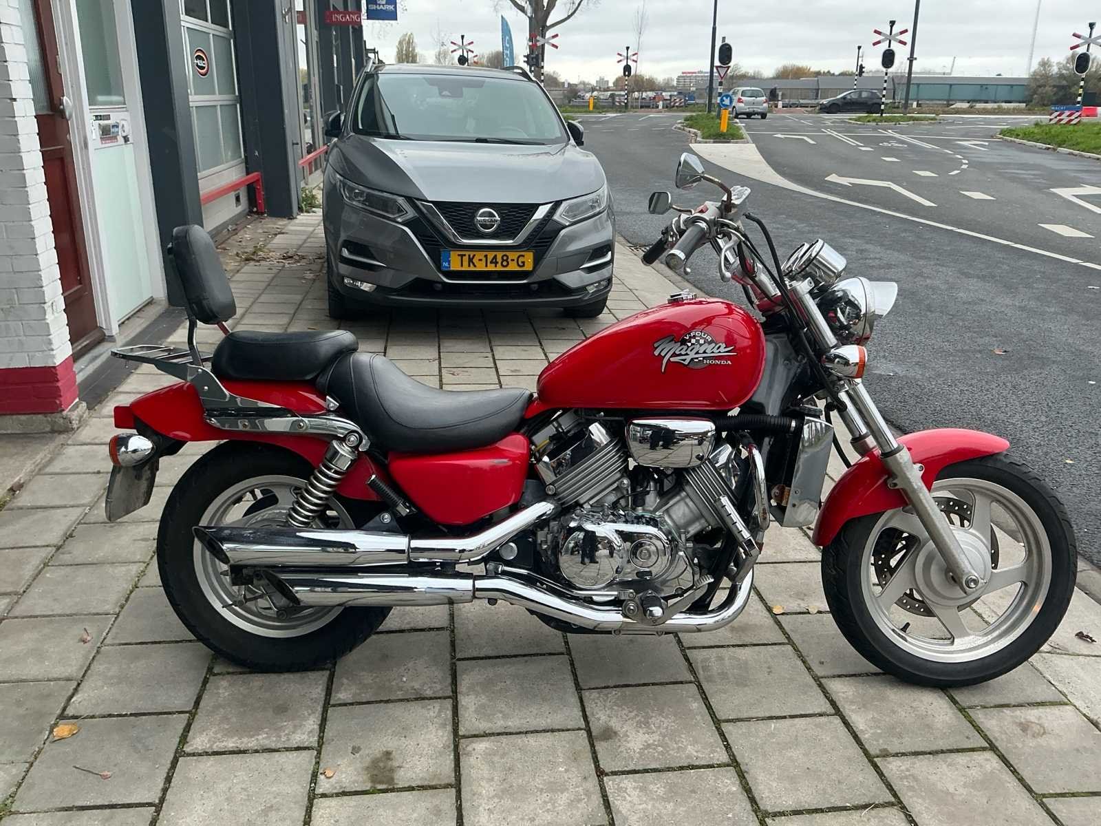 Merk: Honda Model: Chopper Type: VF 750C Magna Kenteken: MX-74-NX Cilinderinhoud: 748cc Datum eerste toelating: 1994-02-28 Vermogen (kW): 65kW Kleur: niet van toepassing Datum eerste toelating (NL): 1996-10-10 Bruto BPM (NL): 1304€ Handelsbenaming: VF750C