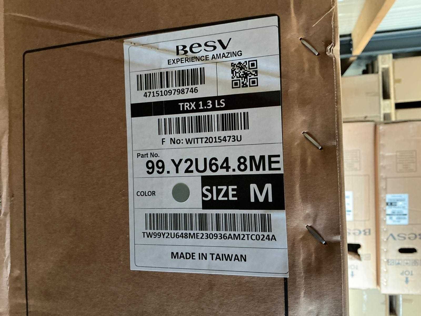 Voorzien van: BESV TRX 1.3 LS met lage instap, Hardtail BESV TRX-serie aluminium frame, compatibel met Shimano Steps en interne accu, maat L (56 cm), SR Suntour XCM34, 34 mm vorkpoten, Lockout, Coil-demping, 1,1/8“-1,5” taps toelopende aluminium stuurbuis, veerweg man: 120 mm dame: 100 mm, Shimano EP600 middenmotor, 250 W nominaal vermogen, 85 Nm koppel, 25 km/u maximale ondersteuning, 630 Wh geïntegreerde lithium-ionaccu, goedgekeurd voor Shimano Service Program, met Smart 4-5,6 A-oplader, Shimano SC-E5003, links gemonteerd, met LCD-display, Microshift XLE 11, 11 versnellingen, Microshift XLE 11, 11 versnellingen, 11-46T, KMC e11Turbo, met Quick-Link, Samox voor Shimano Steps, 34T kettingbladShimano, Hydraulische schijfrem, 2-zuiger, 180 mm voor- en achterremschijven, 2-vinger hydraulische schijfremhendel, E-MTB reis bar, 6066 legering, 4 mm rise, sweep: 7 graden naar achter, 31,8 mm klem, E-MTB 3D gesmede stuurpen van legering, 31,8 mm klem, voor interne kabelgeleiding, Acros, AZX-581, 1,5" balhoofd, hoekcontactlagers, geïntegreerde kabelgeleiding, E-MTB gelhandvatten met padding en BESV-klem, Microshift XLE 11, 11 versnellingen, Selle Italia X3 eBike, Promax SP-726, diameter 31,6 mm zadelpen, pedalen Wellgo, aluminium body, kogellagers , Formula CL-811 voornaaf, Formula CL-3248 achternaaf, Boost naafafstand, WTB STi27 29" multikamer aluminium velgen 32H, Maxxis Ard banden, nieuw in doos, fiets dient zelf nog geassembleerd te worden. Merk: BESV Model: TRX 1.3 LS Product type: Hard-tail BESV TRX 1.3 LS Frame type: Size M 52cm Afgelezen kilometerstand: 0km Motorpositie: Middenmoter Montage: Nieuw in doos, nog op te bouwen Remsysteem: Schijfremmen voor- en achter Voorvering: true Versnellingen: 11 Framemaat: M Type: MTB lage instap Kleur: Rock-grey with night black Gewicht: 25kg Lengte: 170cm Breedte: 26cm Hoogte: 90cm Materiaal: Aluminium