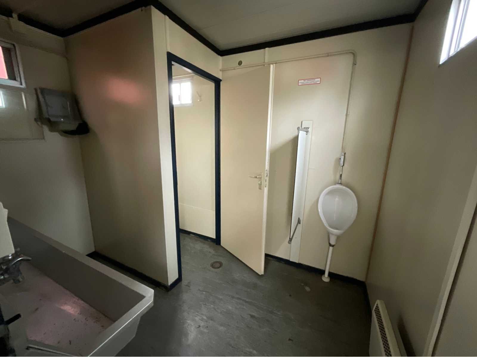 Voorzien van: 3 compartimenten, wastrog, toilet, urinoir, 50L warm water boiler, kantoorruimte, Merk: De Meeuw Type: 9630 Totale afmeting L: 9700mm Totale afmeting Breedte: 3070mm Totale afmeting Hoogte: 2900mm