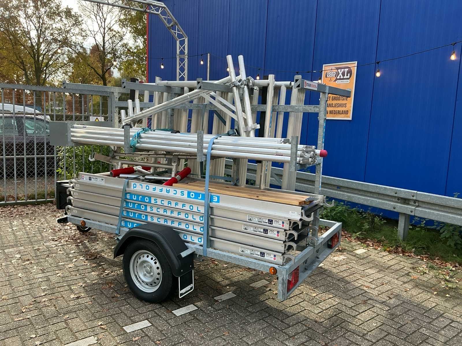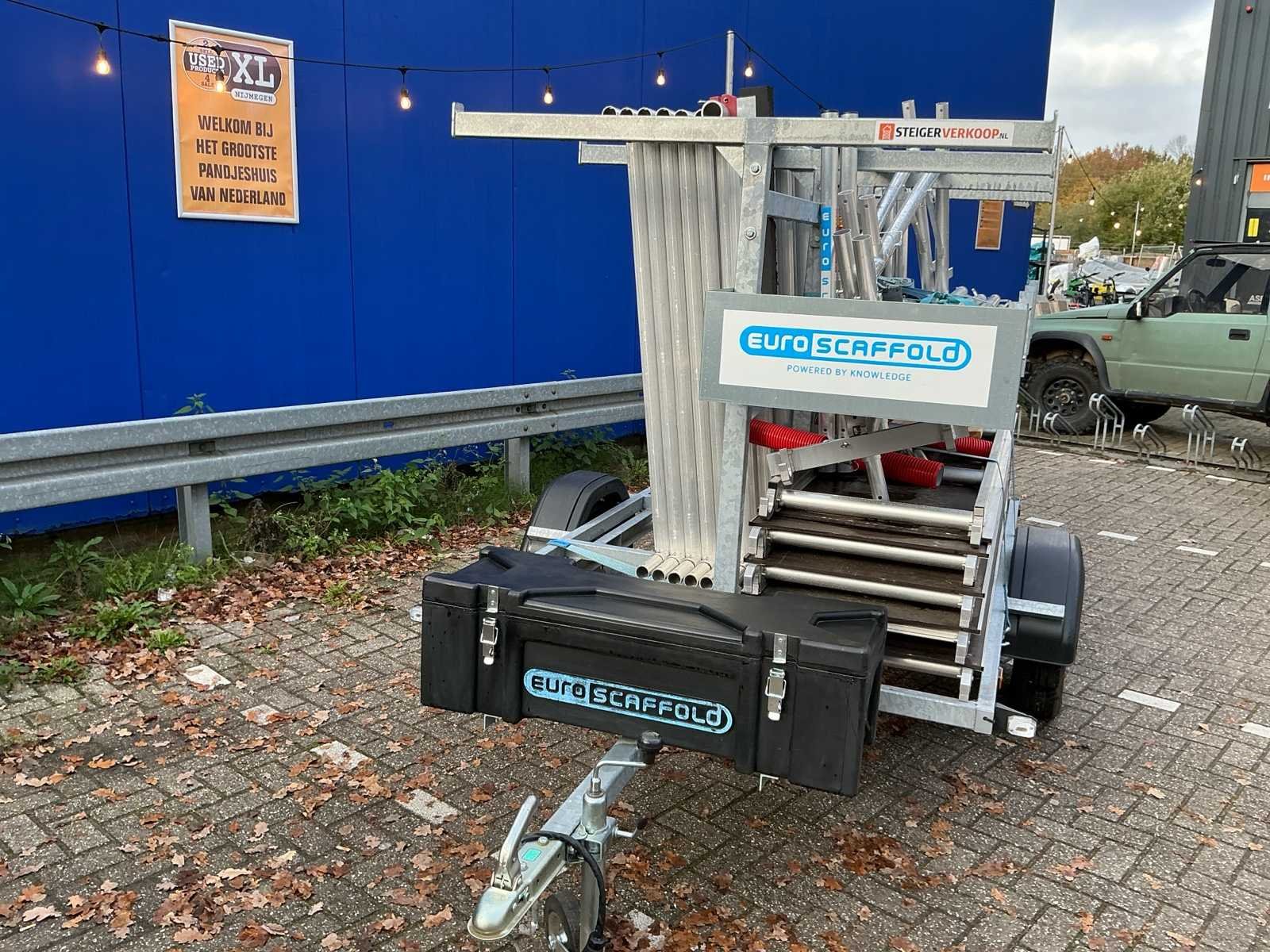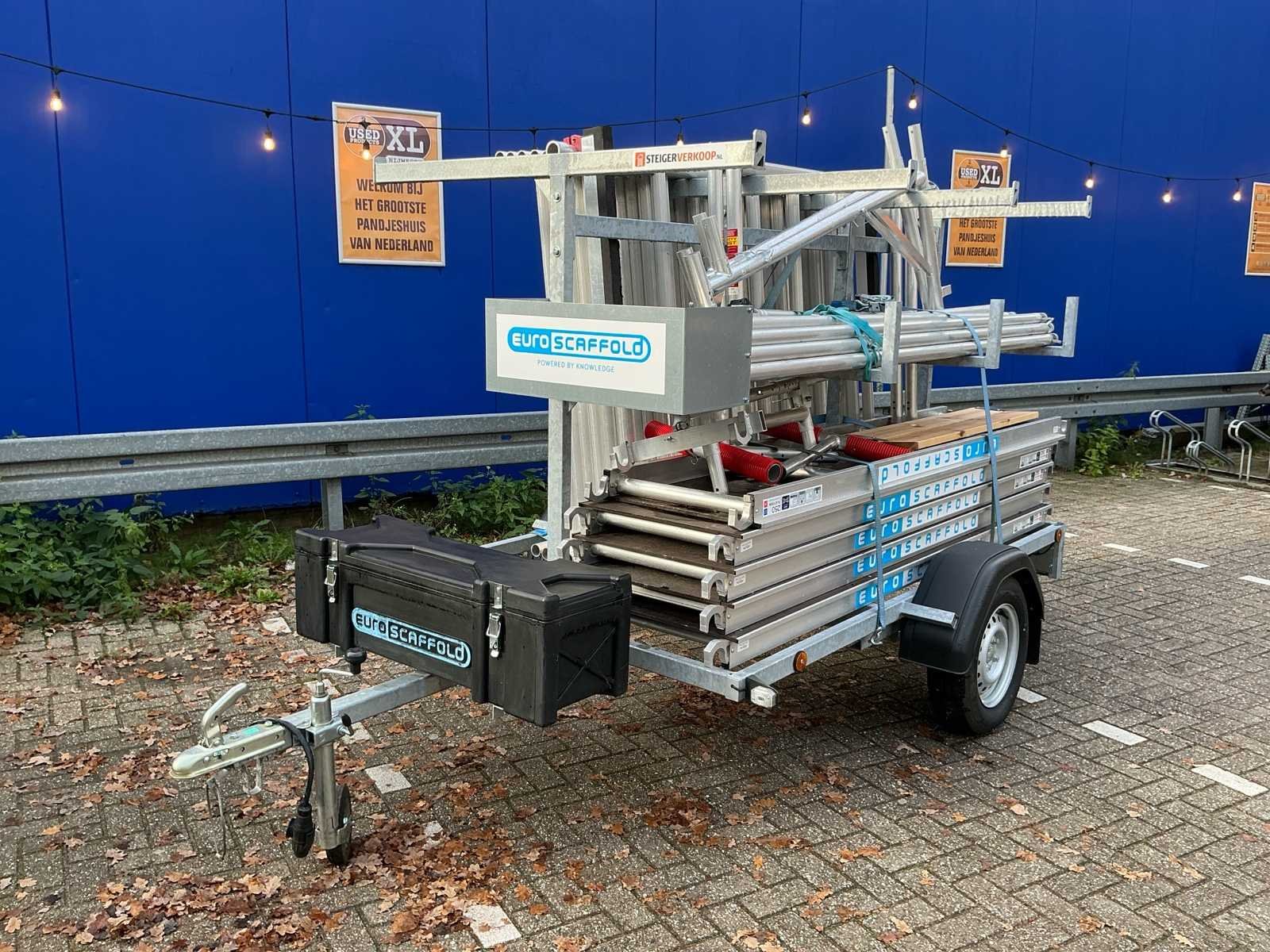 Ongebruikt, inclusief uitbouwdelen voor bijvoorbeeld het plaatsen van dakkapel 8,20 m werkhoogte. 13 polige stekker met verloop (aanhangwagen) Merk: Euroscafhold Bouwjaar: 2025 Afmeting h: 7300mm Aantal opbouwdelen: 5 Aantal platforms: 5 Aantal platforms met luik: 4 Aantal wielen: 4 Met steigeraanhanger: true
