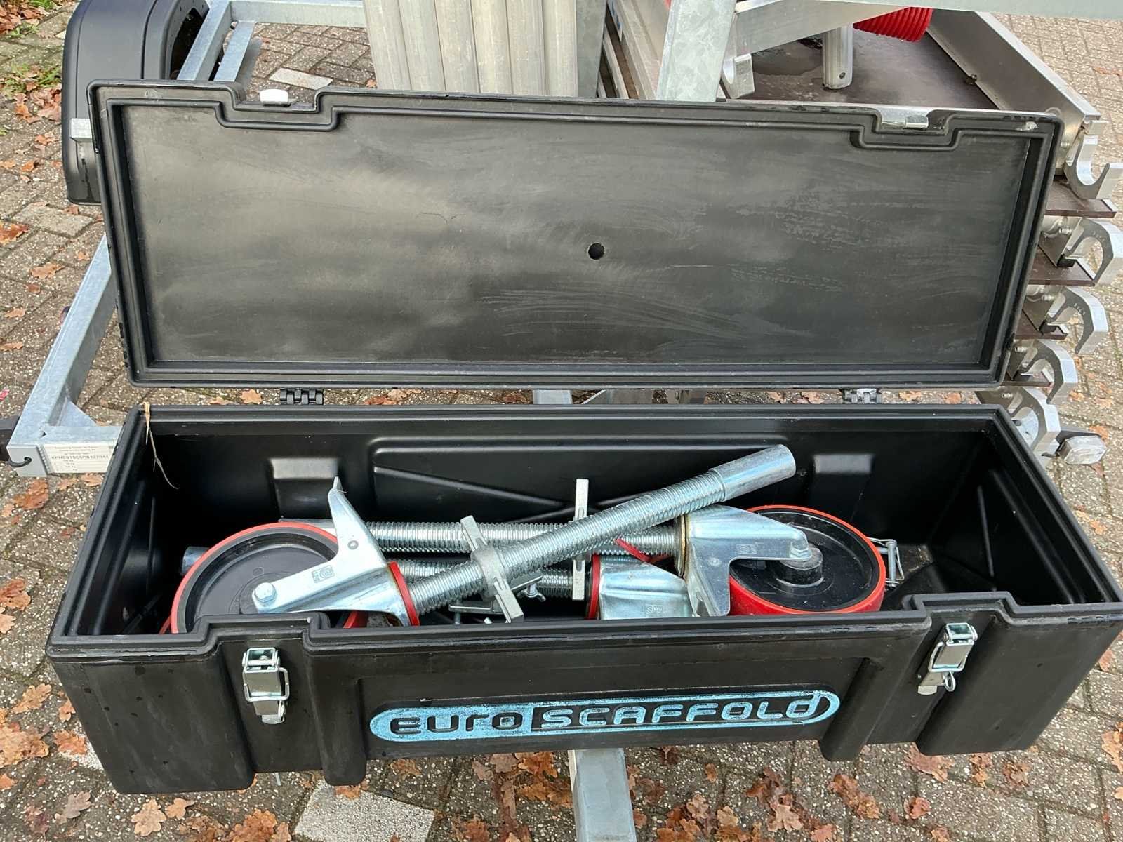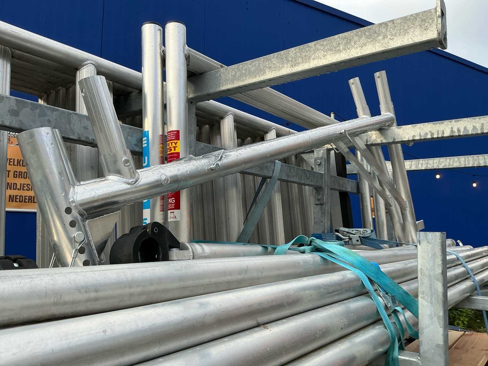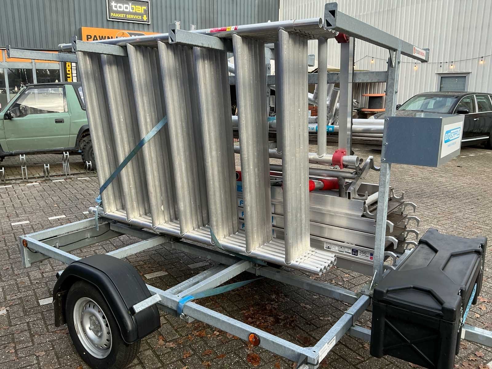 Ongebruikt, inclusief uitbouwdelen voor bijvoorbeeld het plaatsen van dakkapel 8,20 m werkhoogte. 13 polige stekker met verloop (aanhangwagen) Merk: Euroscafhold Bouwjaar: 2025 Afmeting h: 7300mm Aantal opbouwdelen: 5 Aantal platforms: 5 Aantal platforms met luik: 4 Aantal wielen: 4 Met steigeraanhanger: true